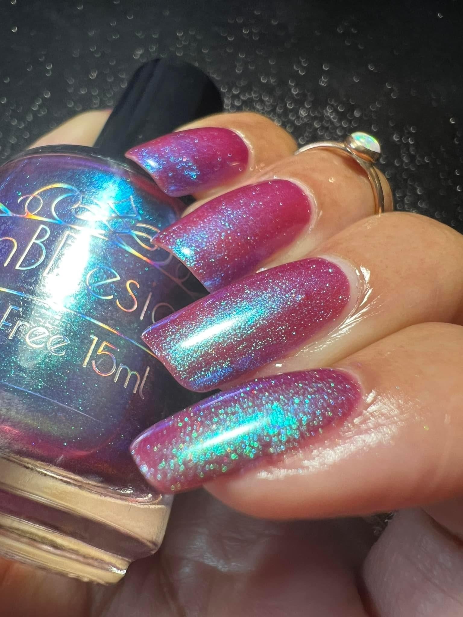 Each of my polishes are made with love and is a unique formulation. All of my polishes are blends made from multiple glitters, and pigments. The suspension base used is 3-free. As with all nail polishes settling will occur. My polishes are no different, some settle more than others, but all experience some settling.