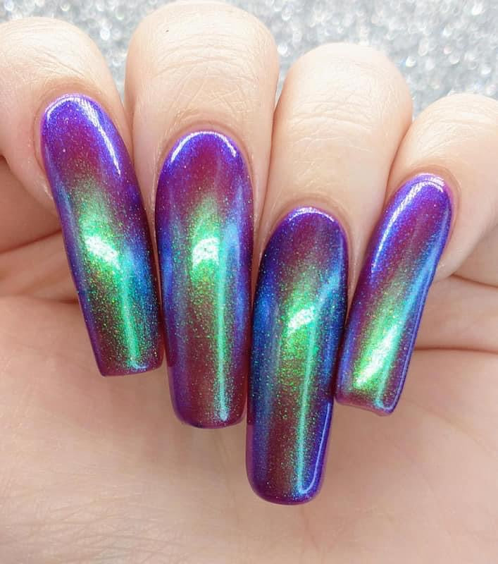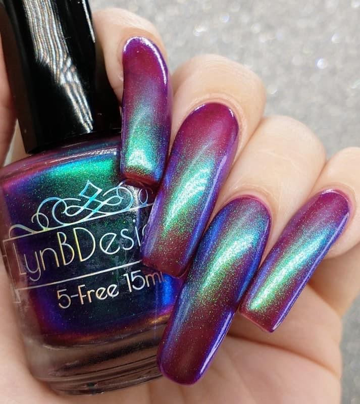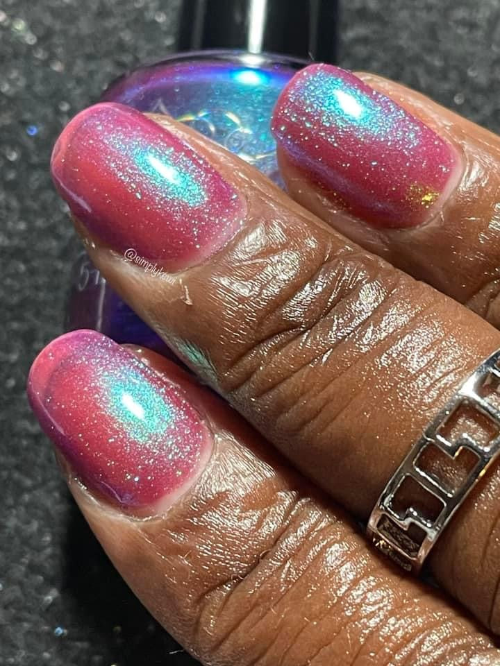 Fair Isle- deep magenta base with intense green to blue to purple shifting shimmer