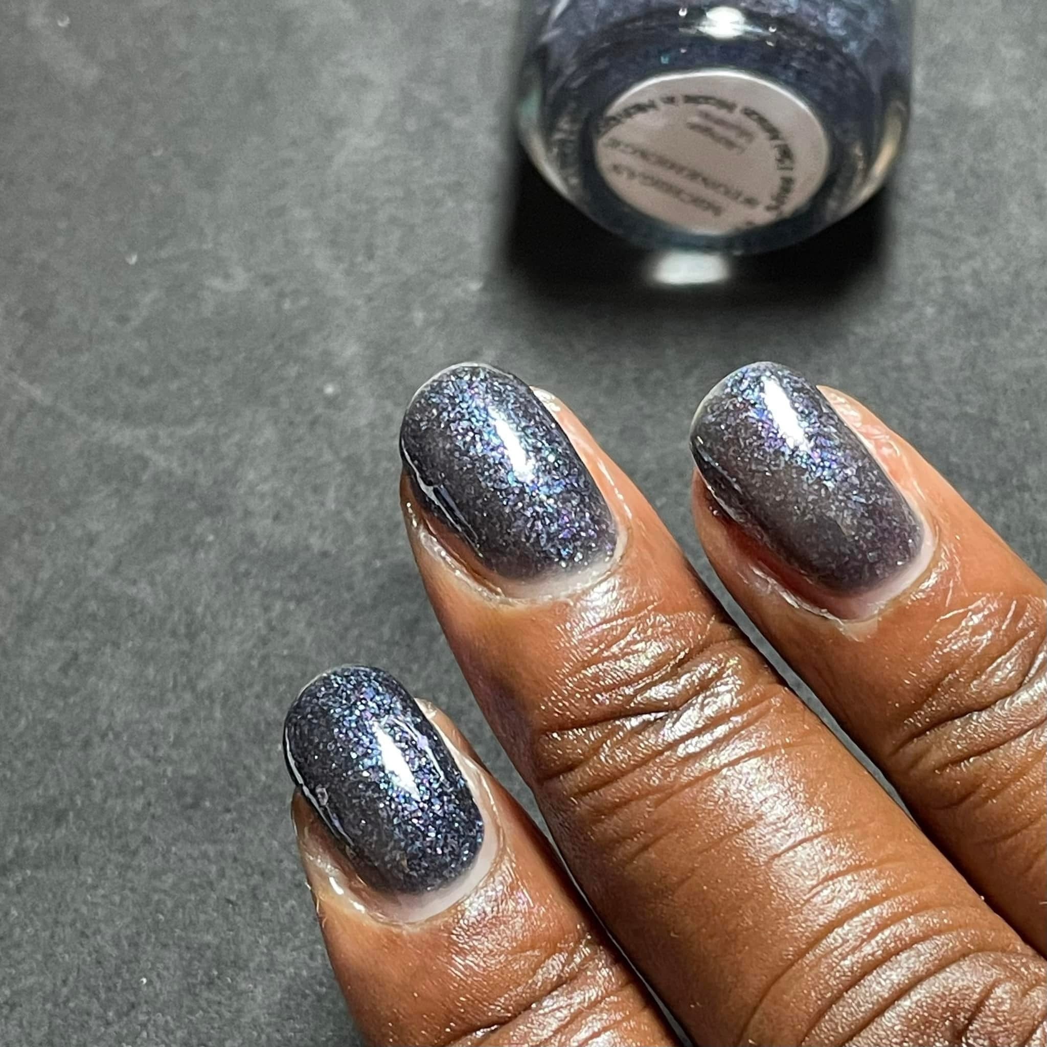 Each of my polishes are made with love and is a unique formulation. All of my polishes are blends made from multiple glitters, and pigments. The suspension base used is 3-free. As with all nail polishes settling will occur. My polishes are no different, some settle more than others, but all experience some settling.