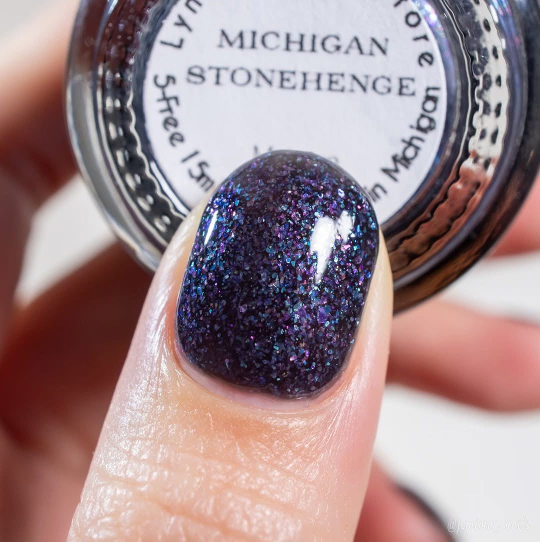 Michigan Stonehenge- buildable blue black base with a rainbow of micro flake shimmer