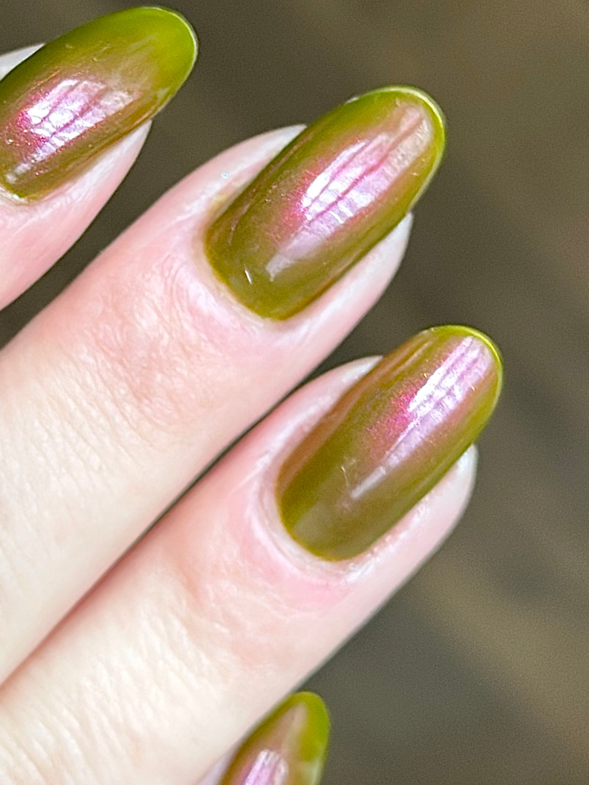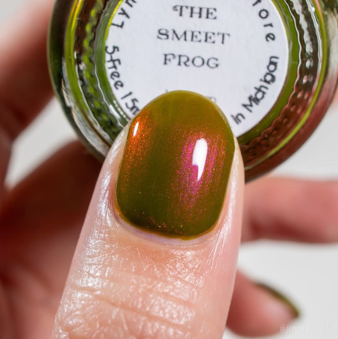 The Smeet Frog- grungy brown/green base with purple to red shifting shimmer
