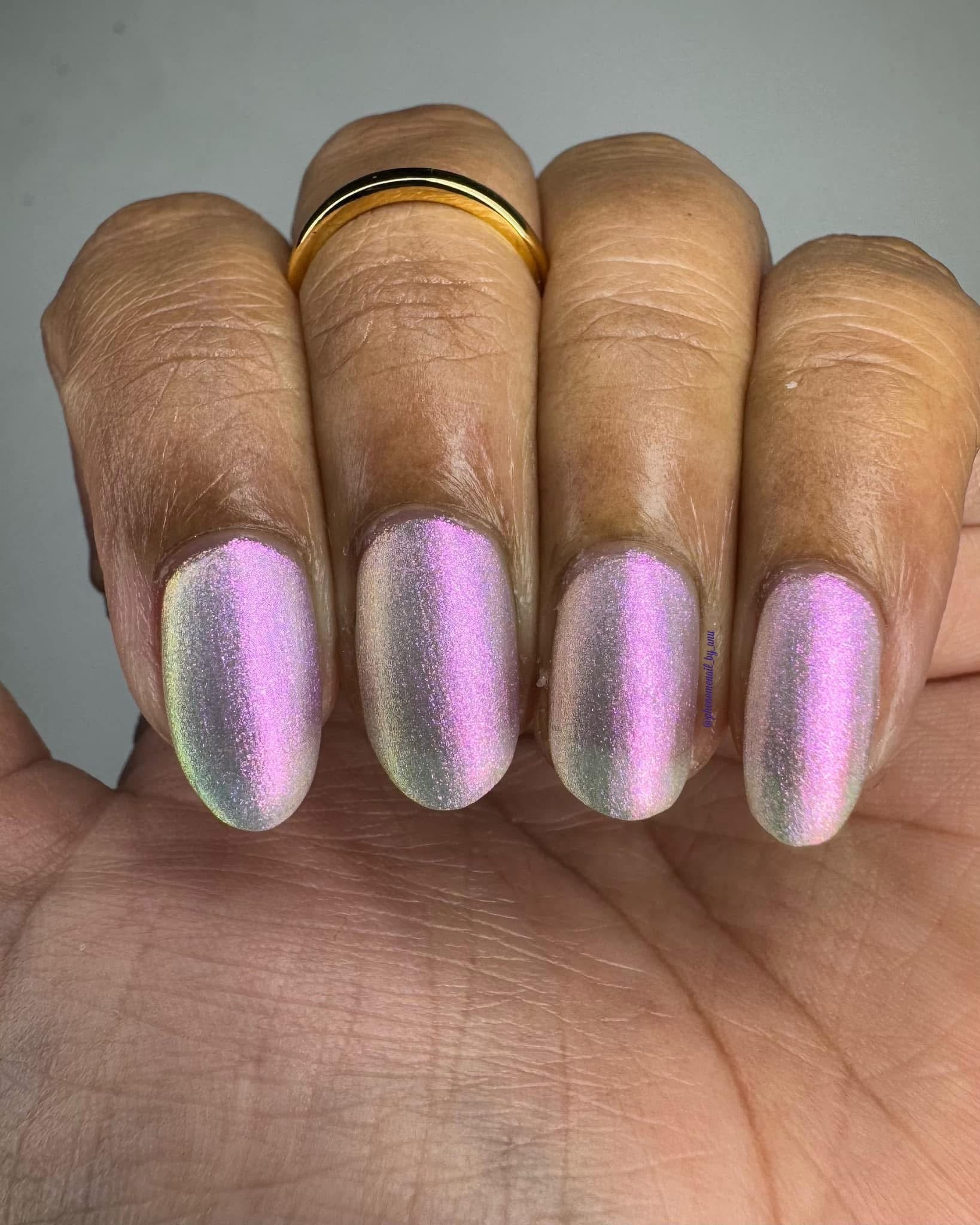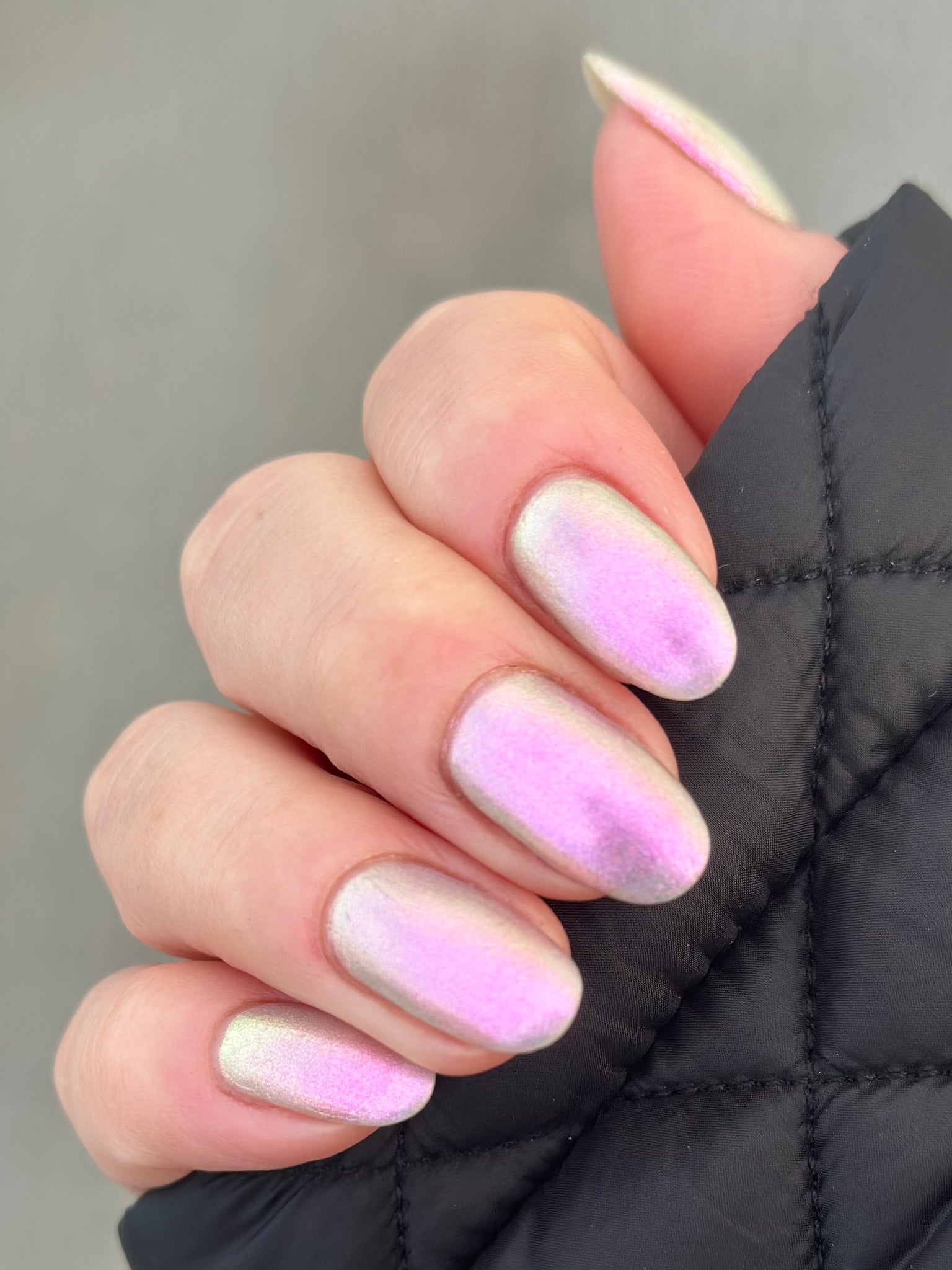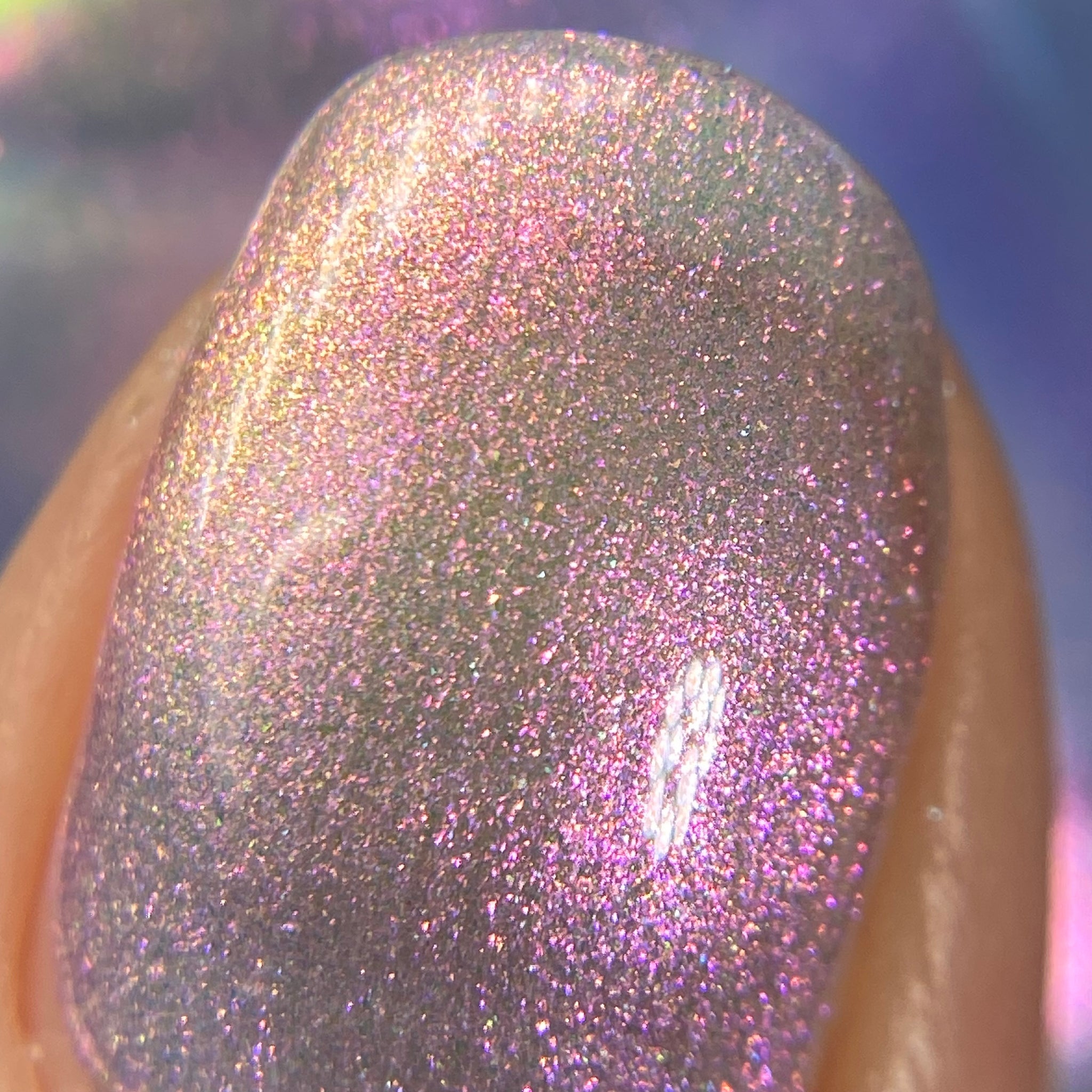 True Love’s Kiss- muted sky blue base with pink to gold to green shifting shimmer