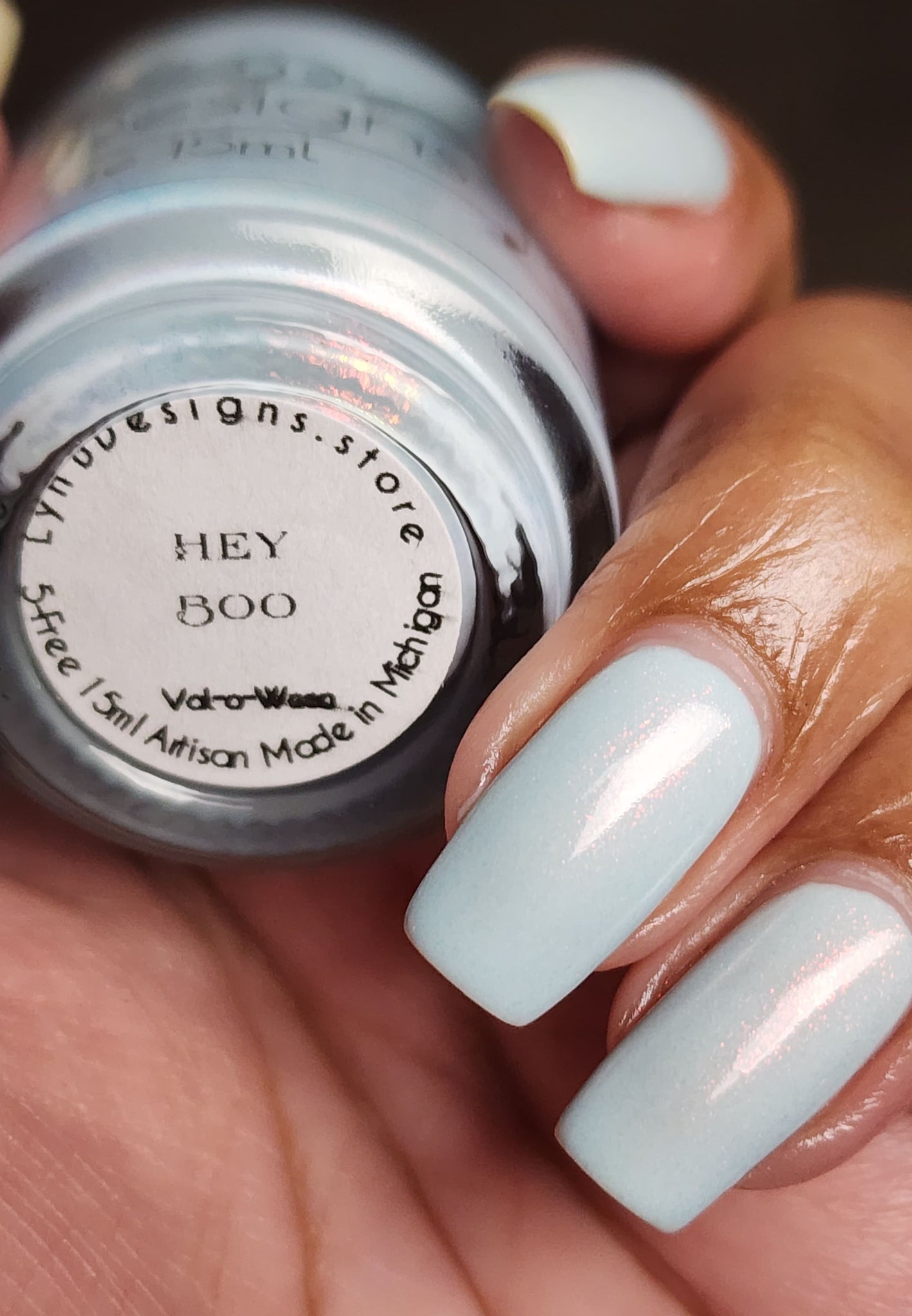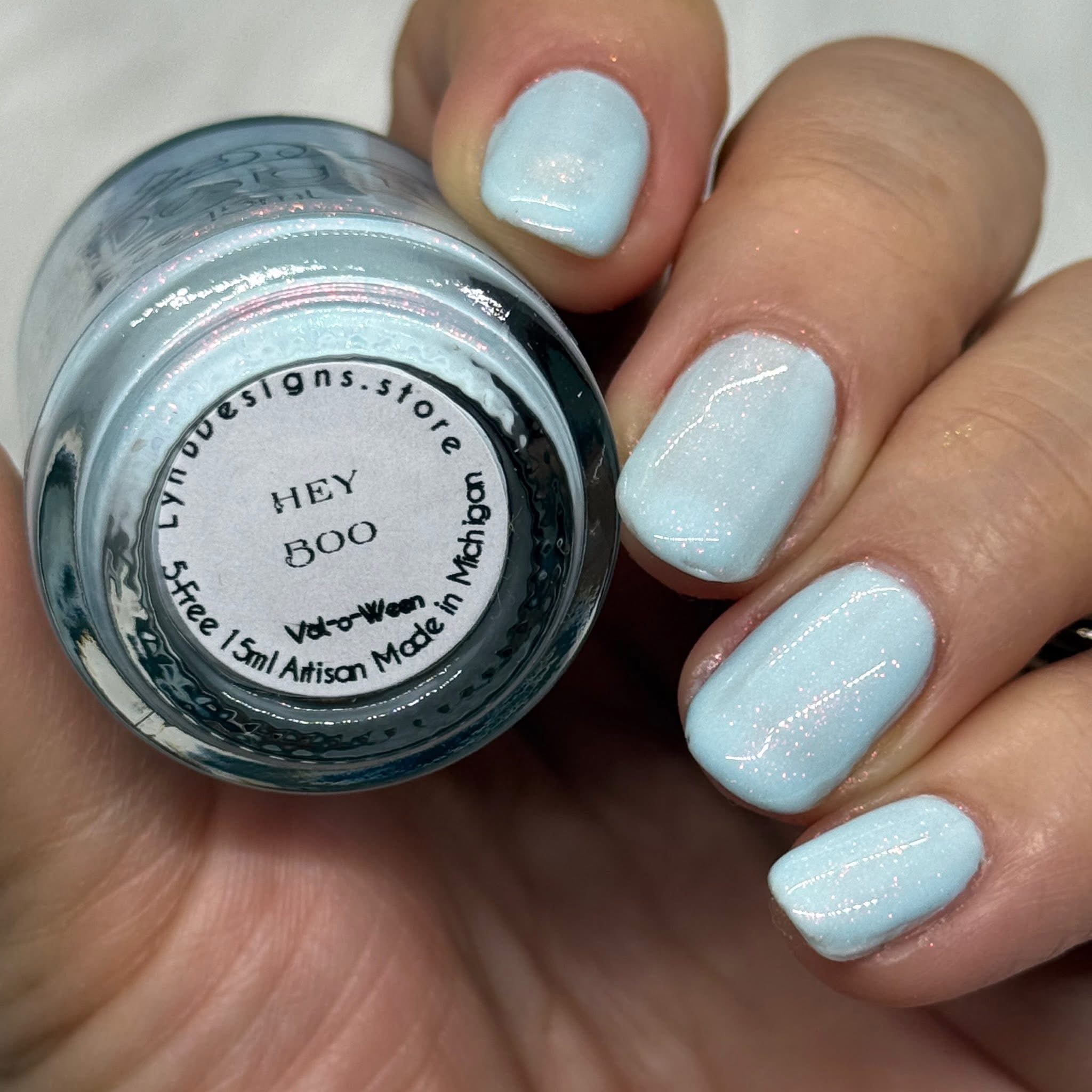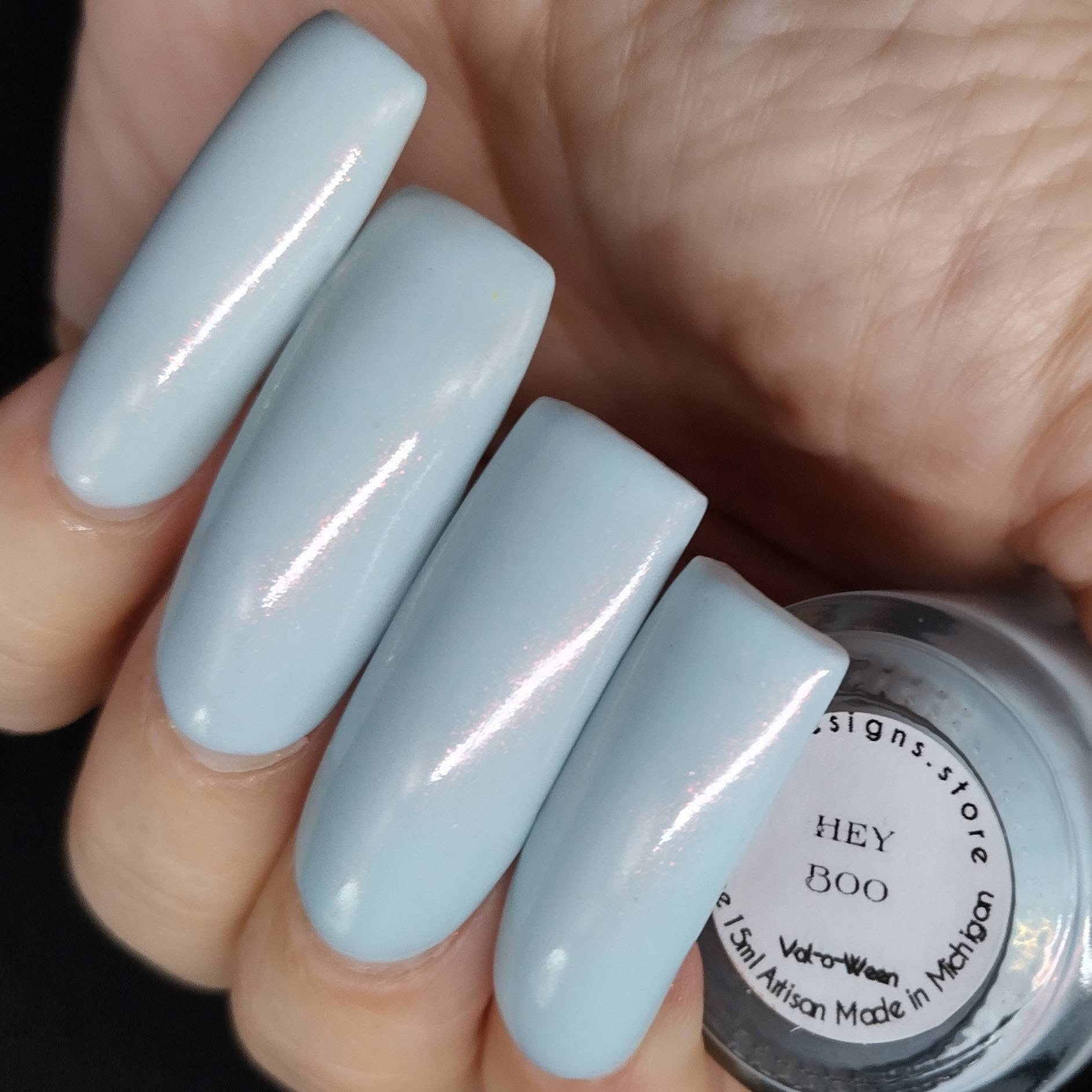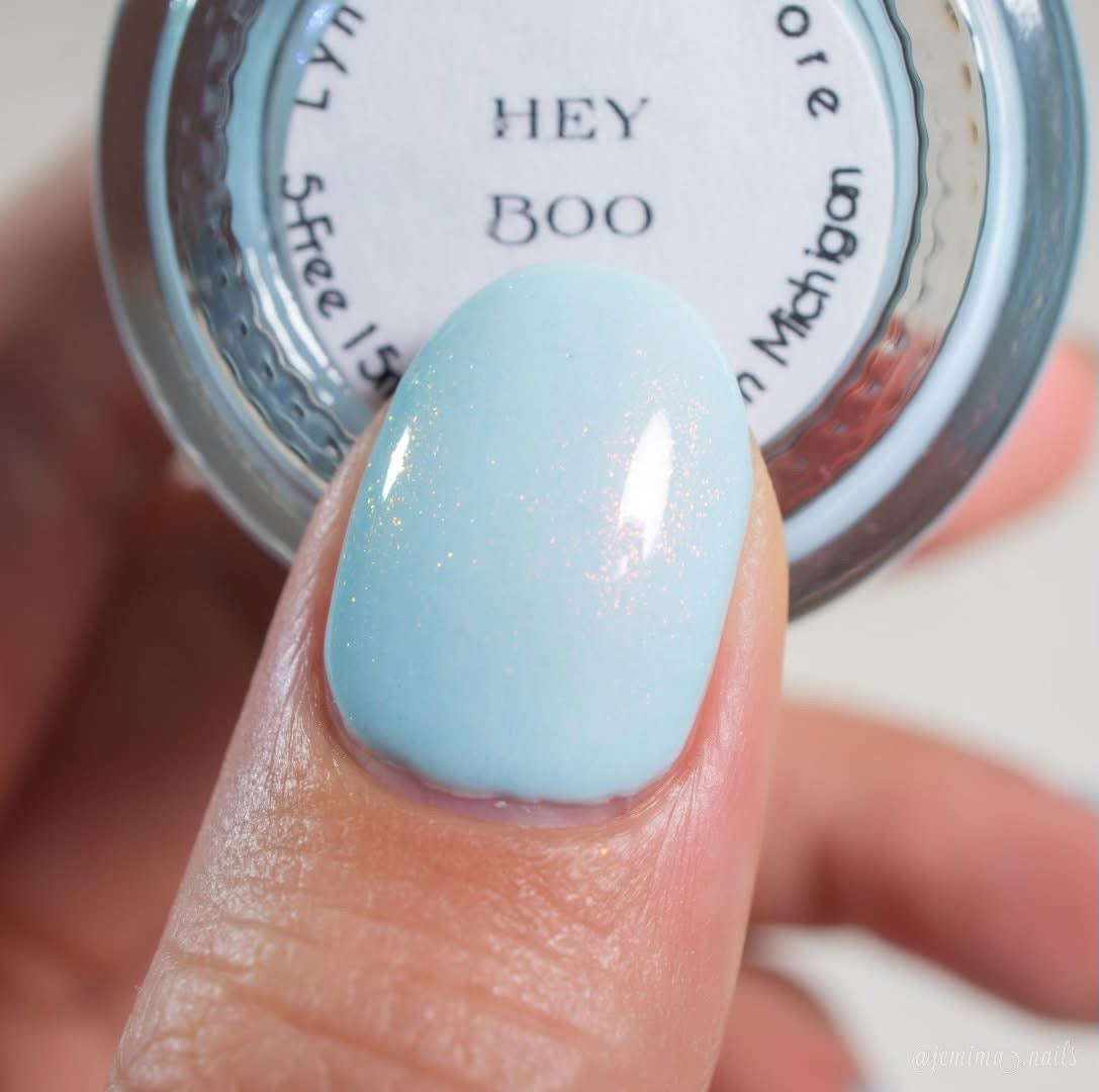 Hey Boo- cornflower blue base with red to orange to gold shifting shimmer