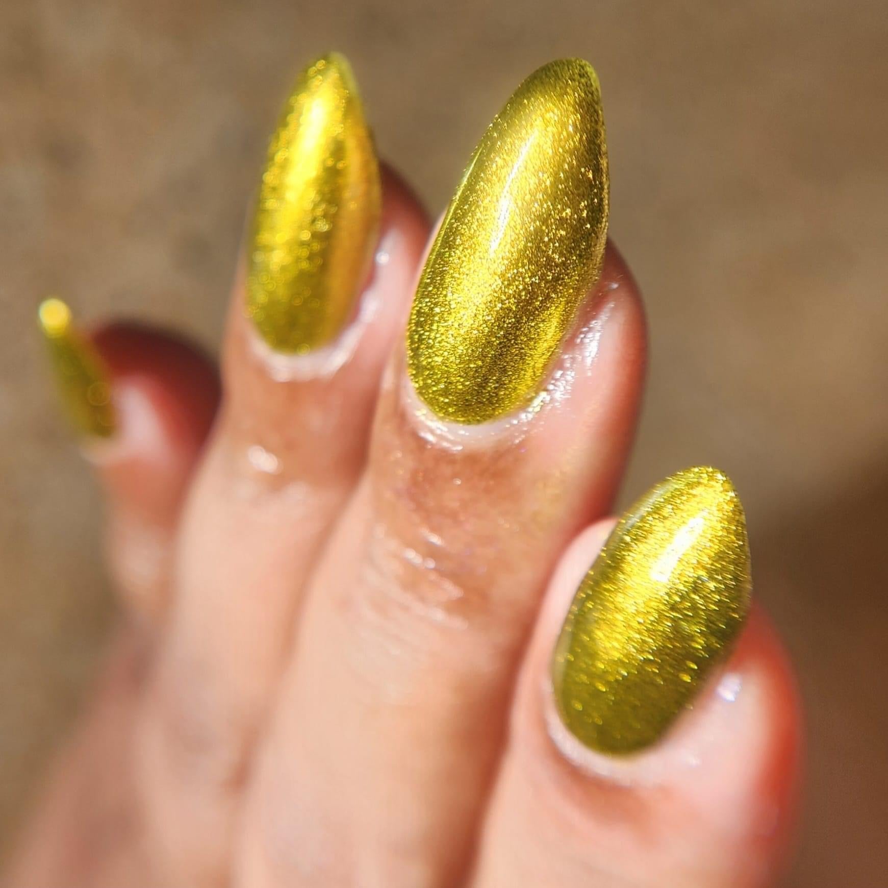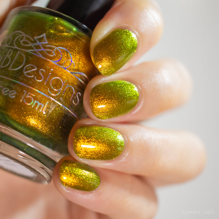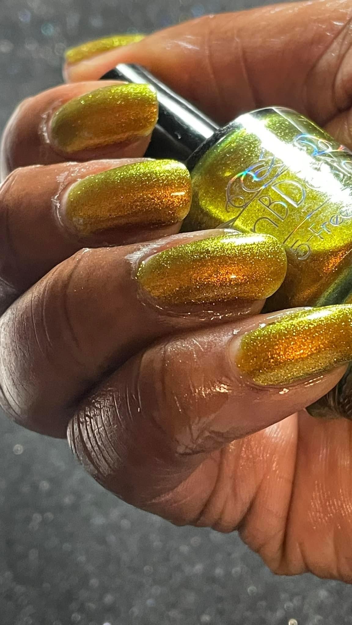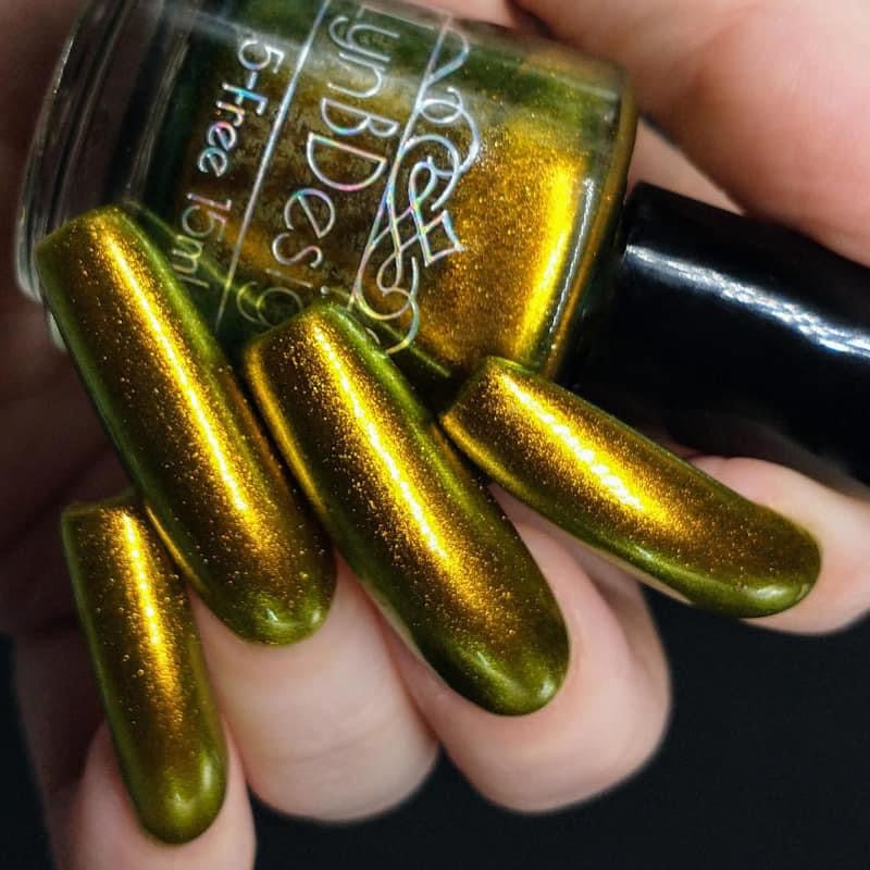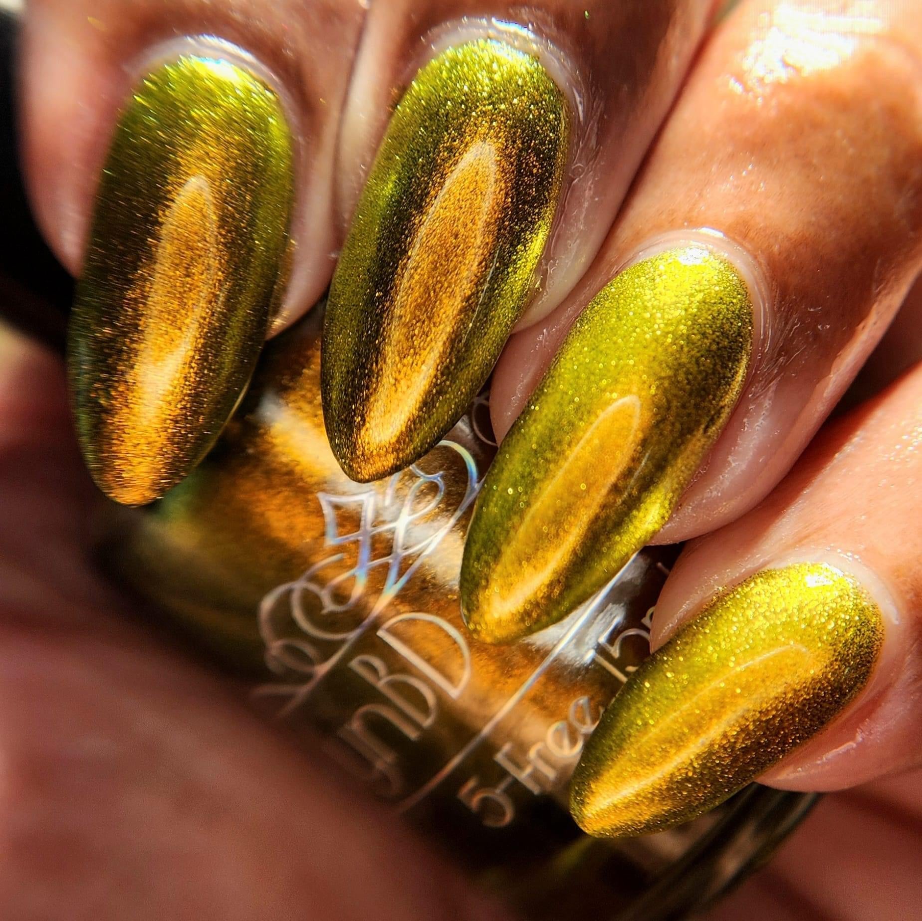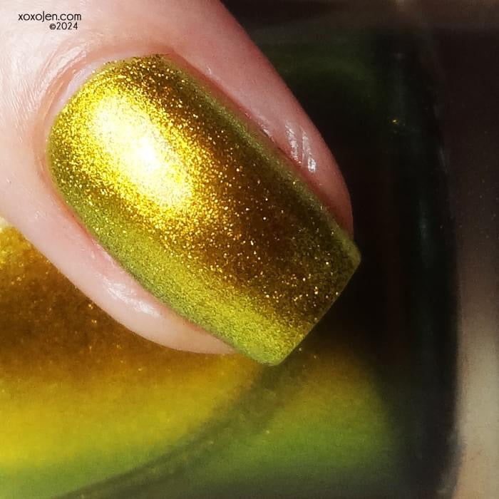 Oh Look It’s Scowly Face- warm yellow base with copper to gold to silver to green shifting multichrome