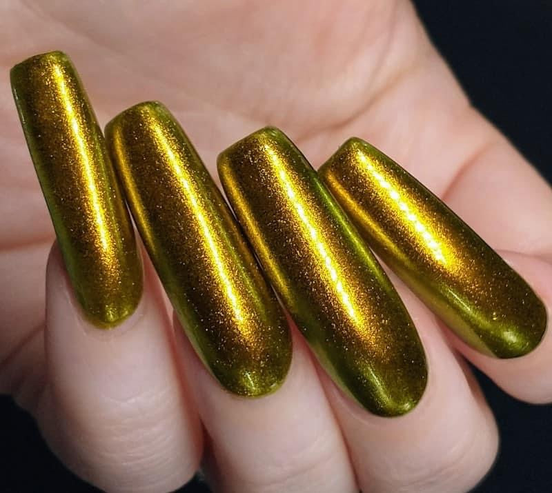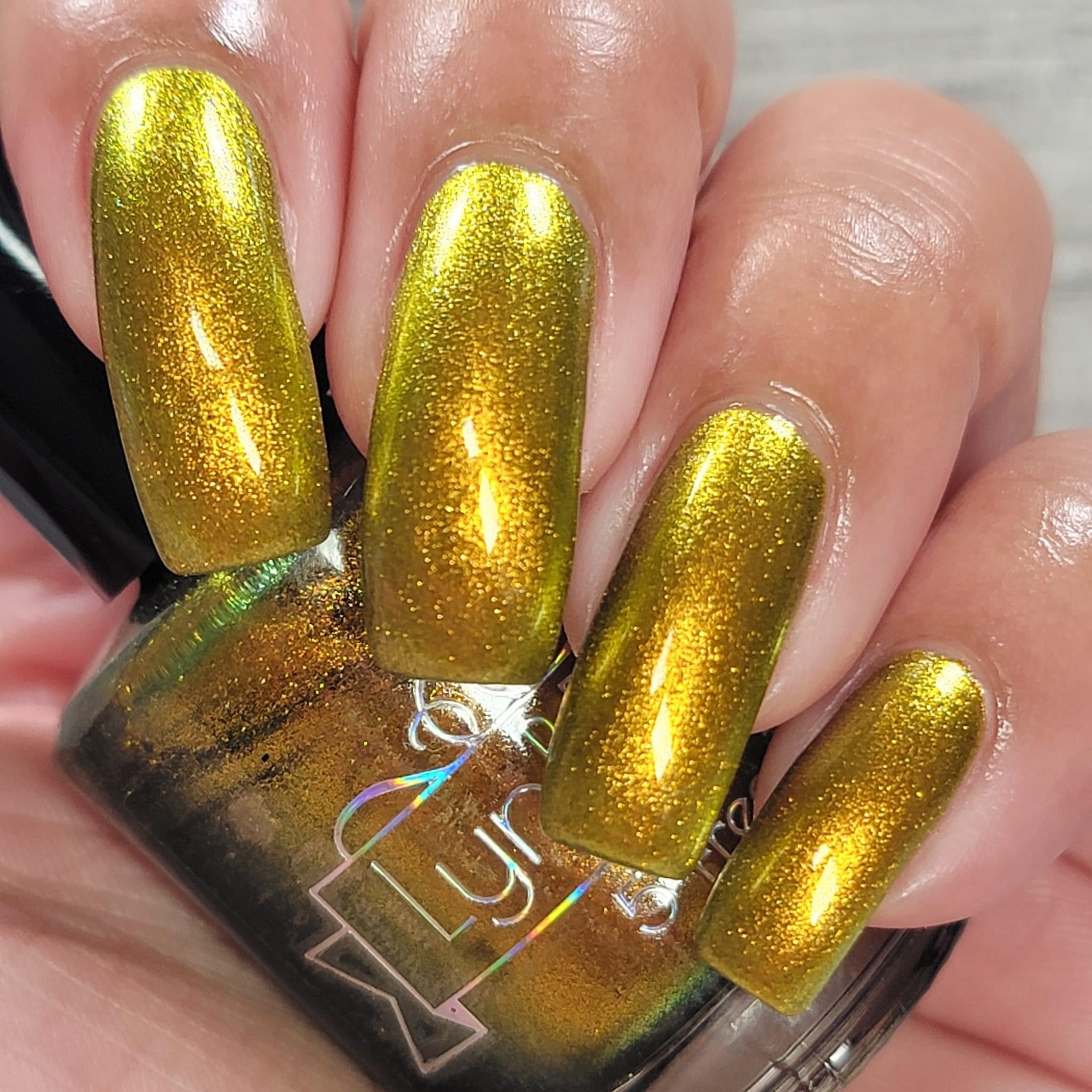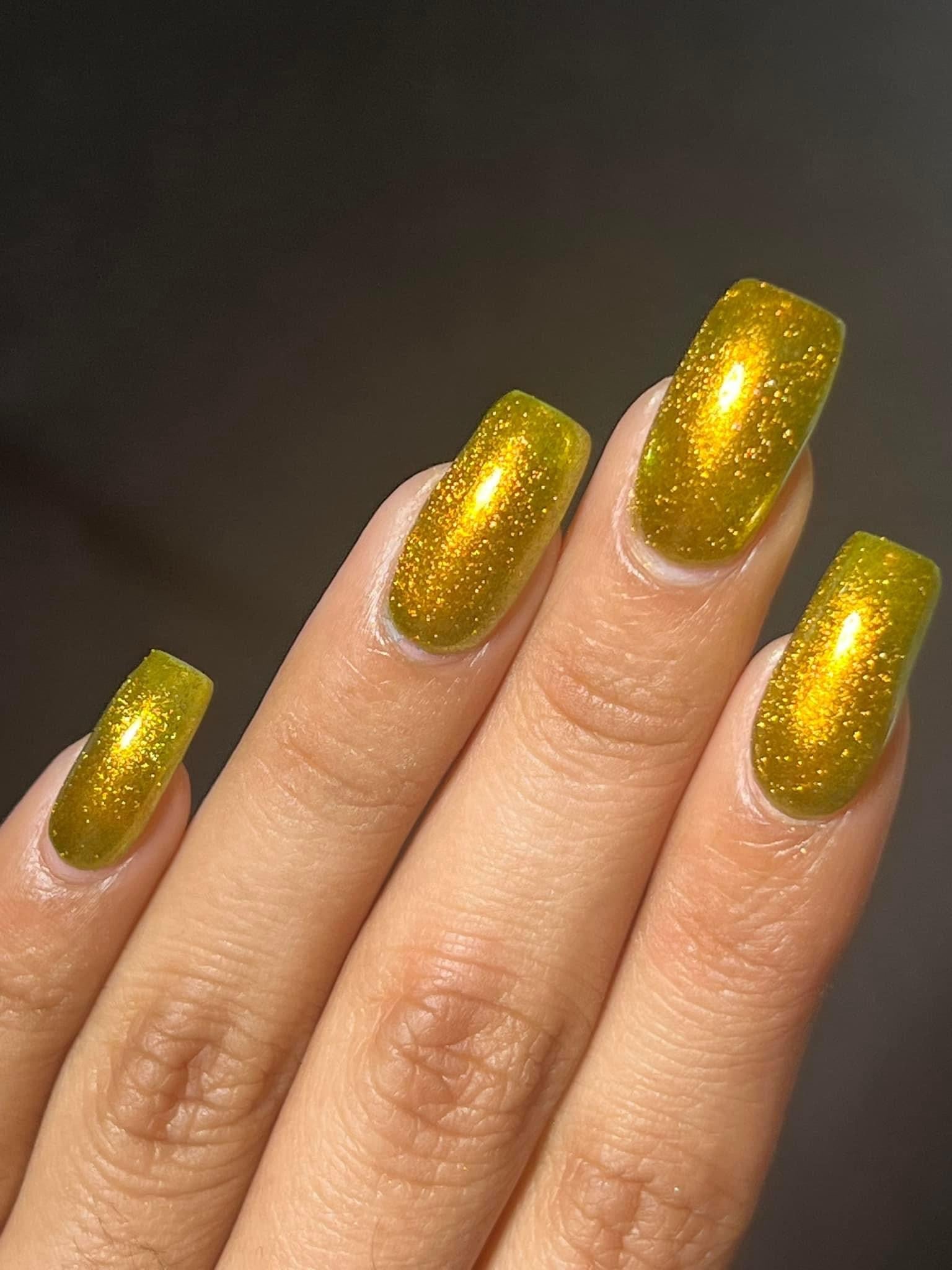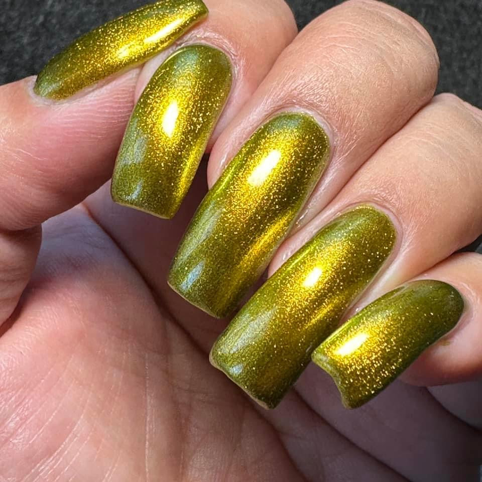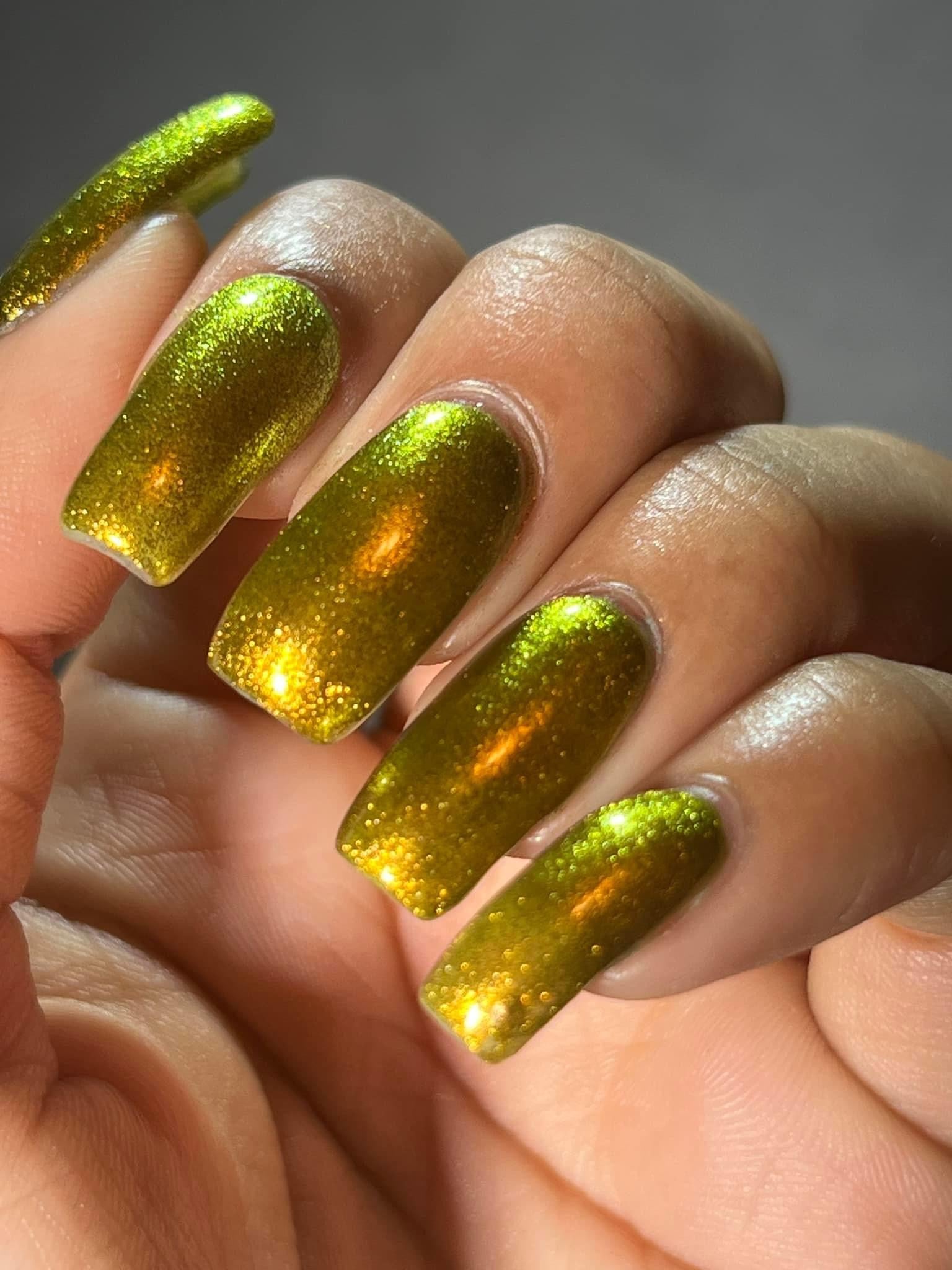 Oh Look It’s Scowly Face- warm yellow base with copper to gold to silver to green shifting multichrome