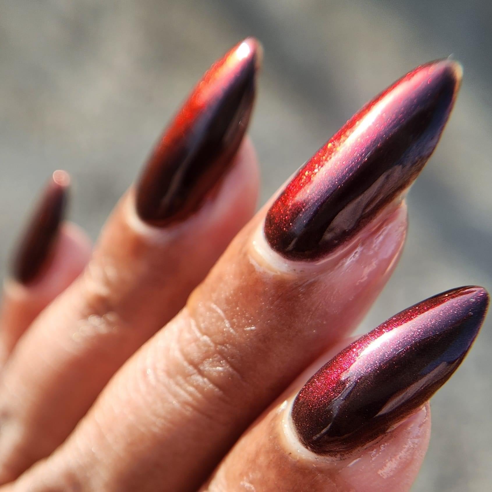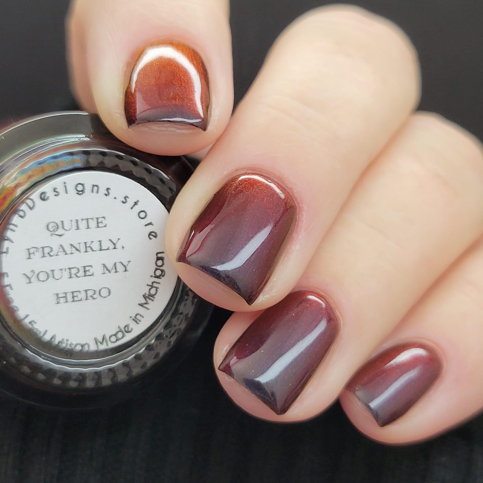 Quite Frankly, You’re My Hero- black base with black to red to orange to gold shifting multichrome