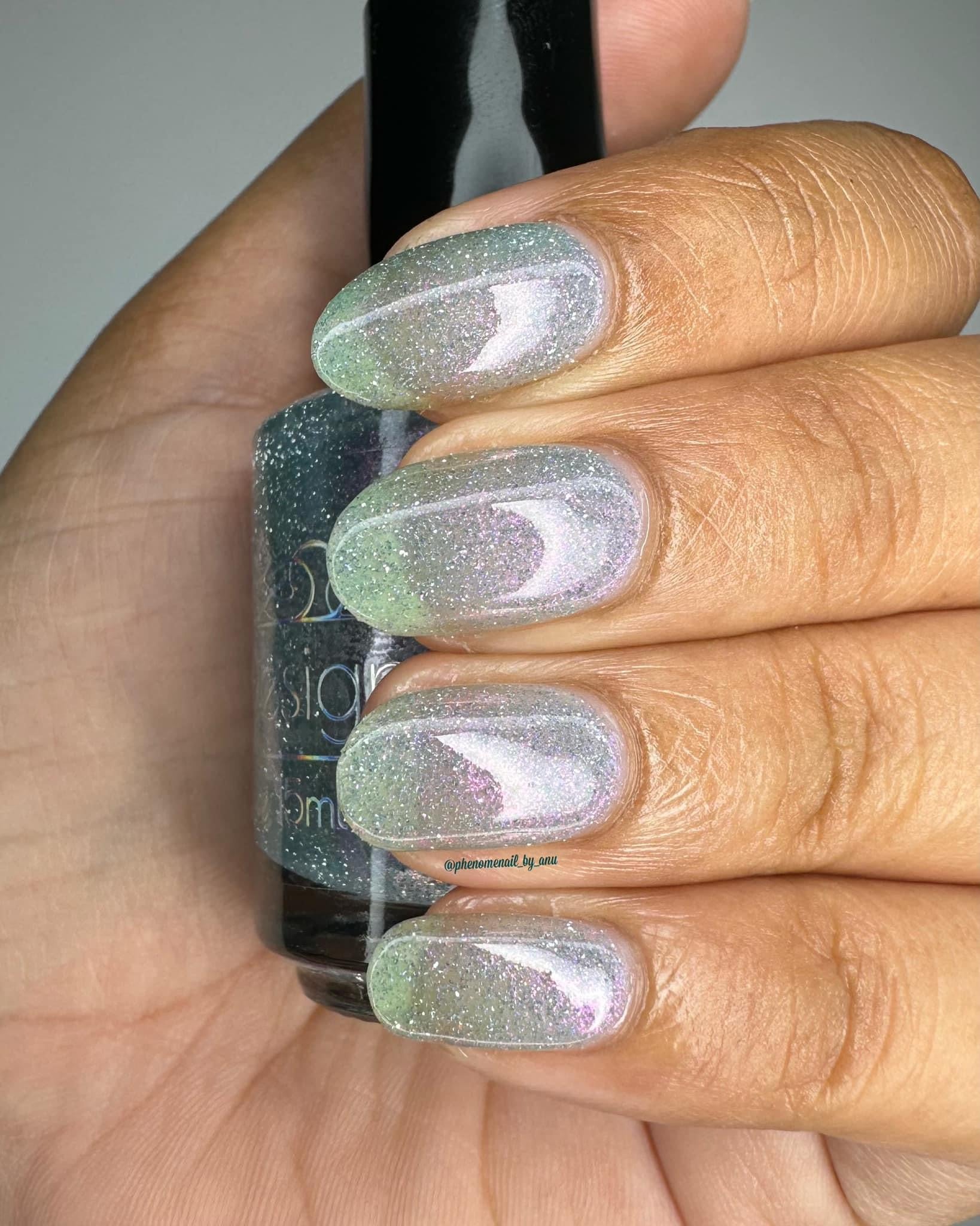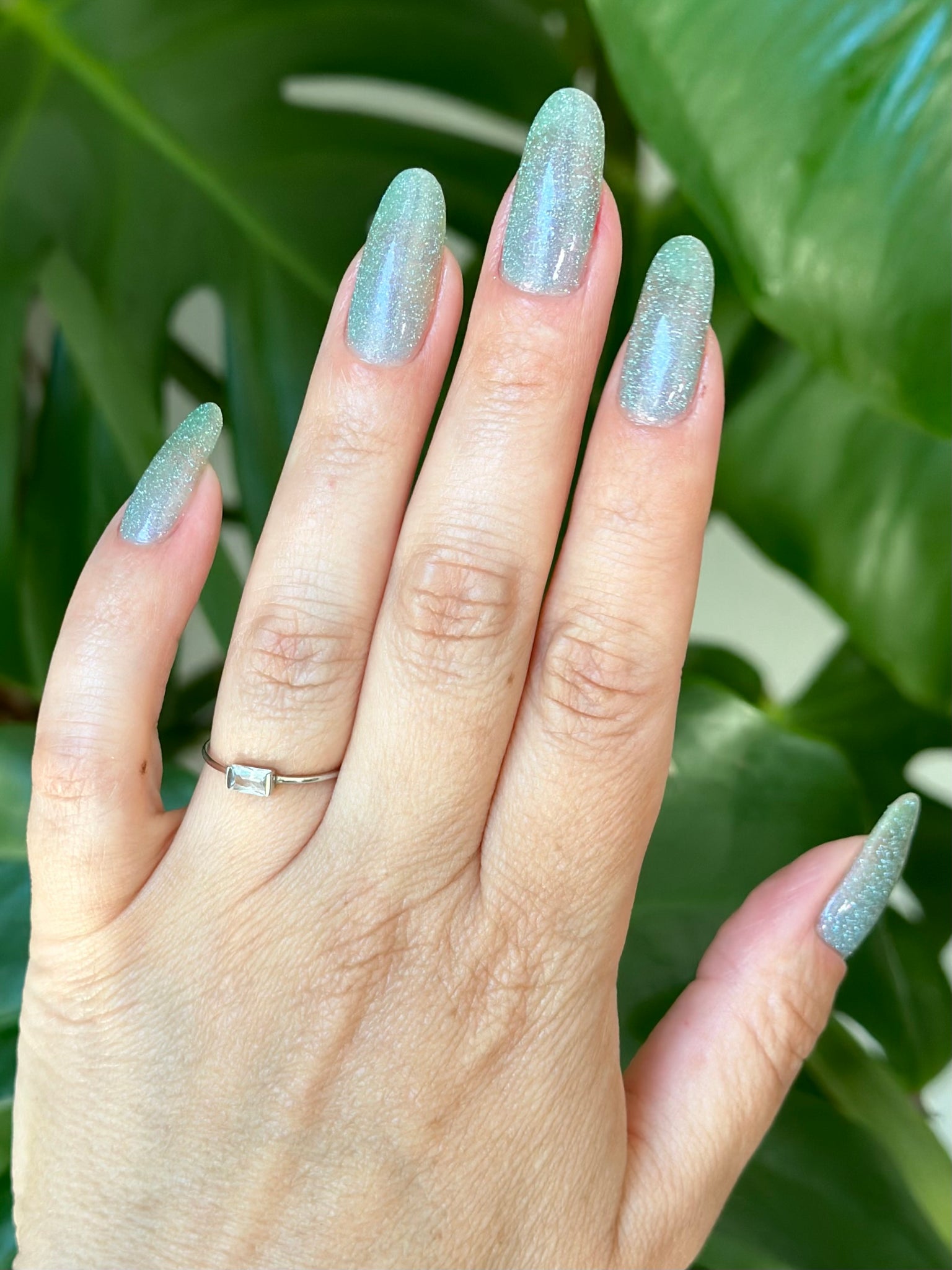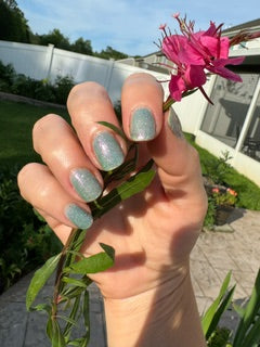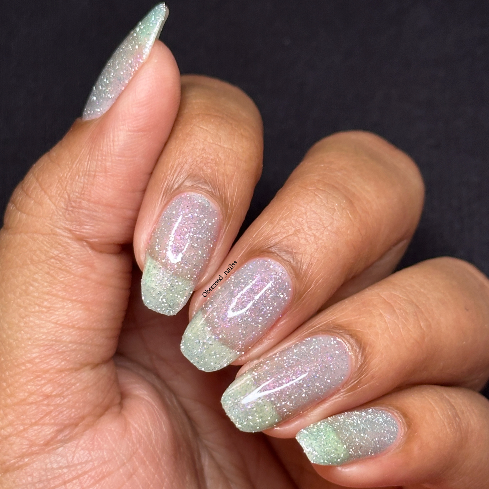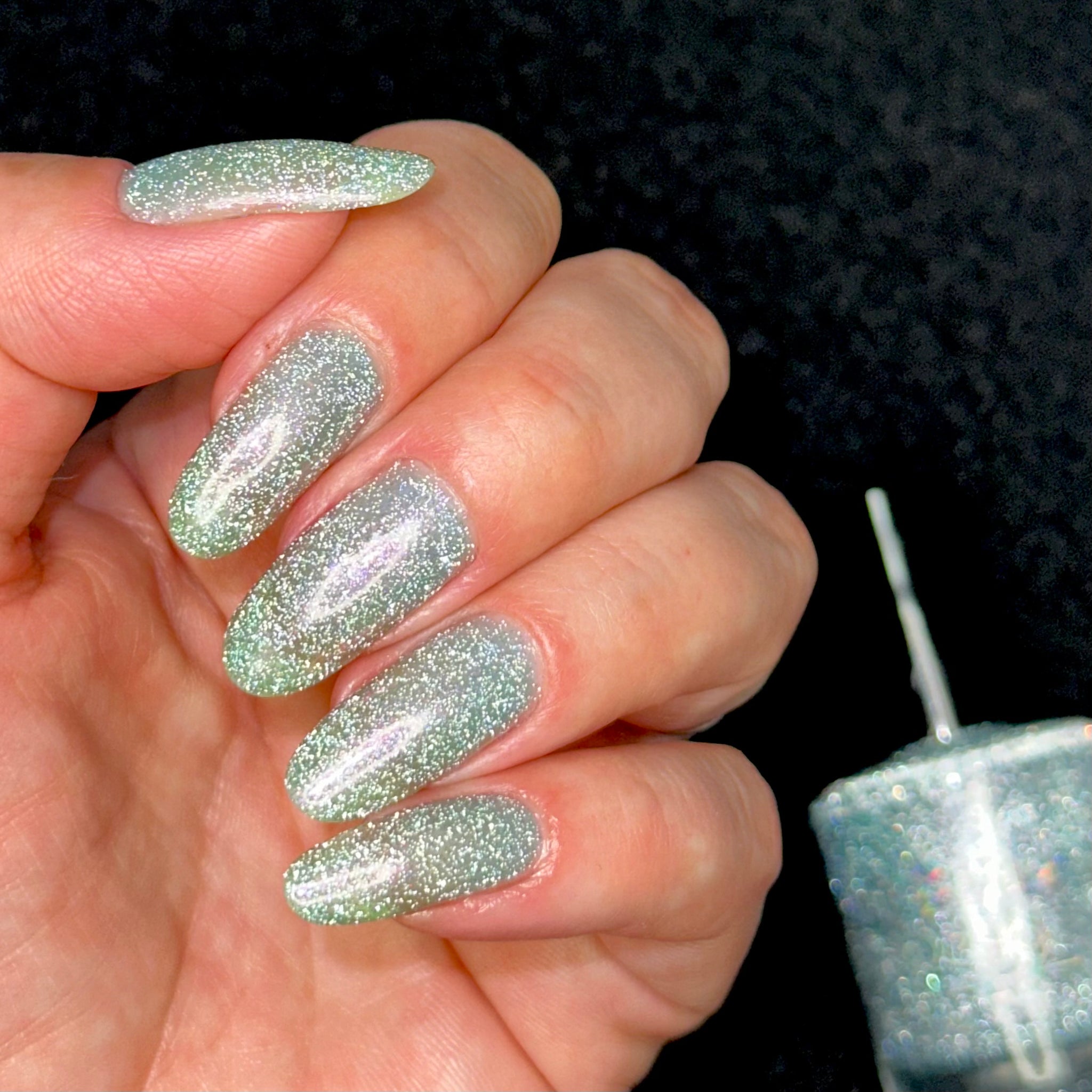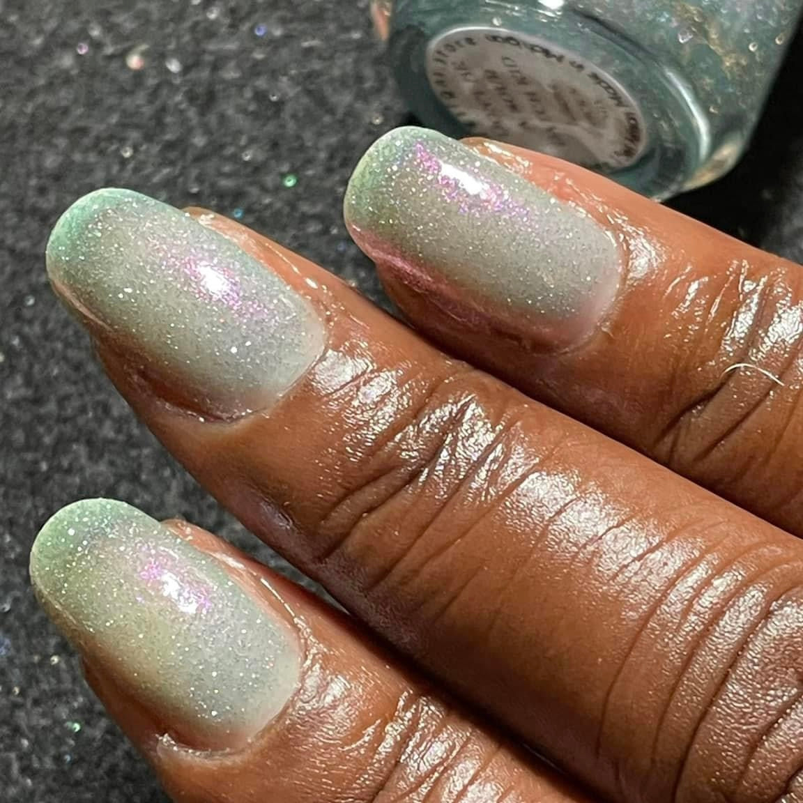Don’t Be a Sour Patch Kid- light blue tinted base with pink to red shifting shimmer and silver light reflective glitter- may stain