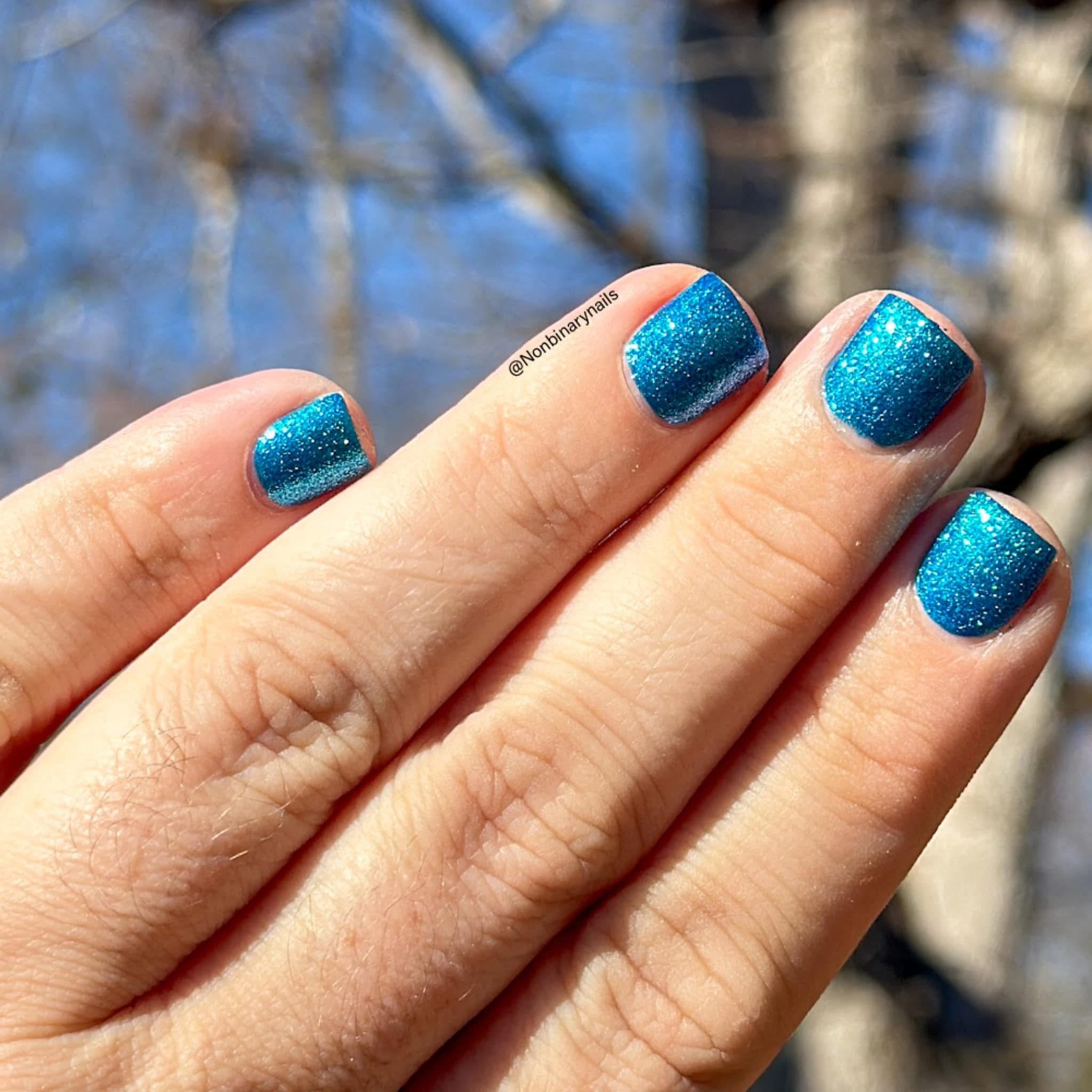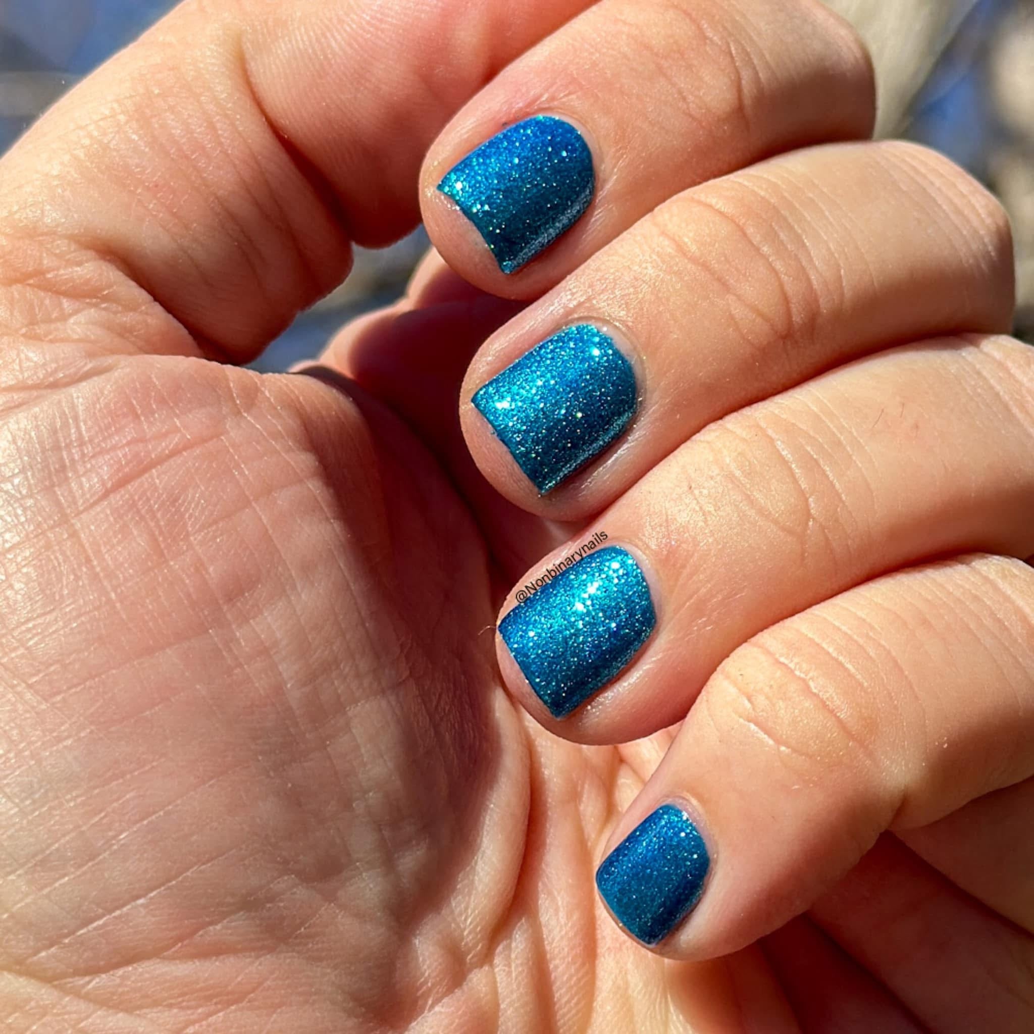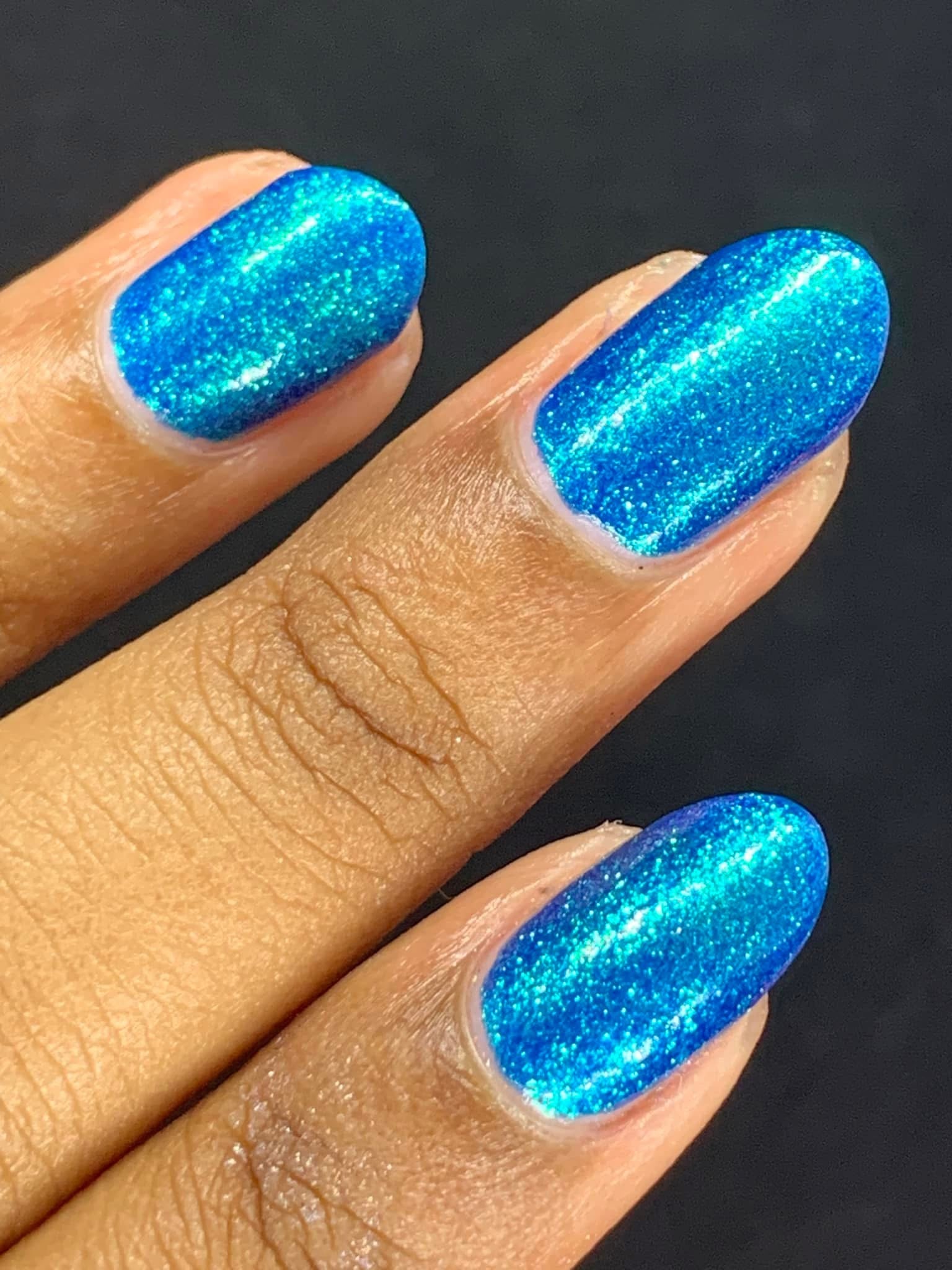 Phthalo Blue- buildable blue jelly base loaded with aqua to blue to purple large particle shifting shimmer