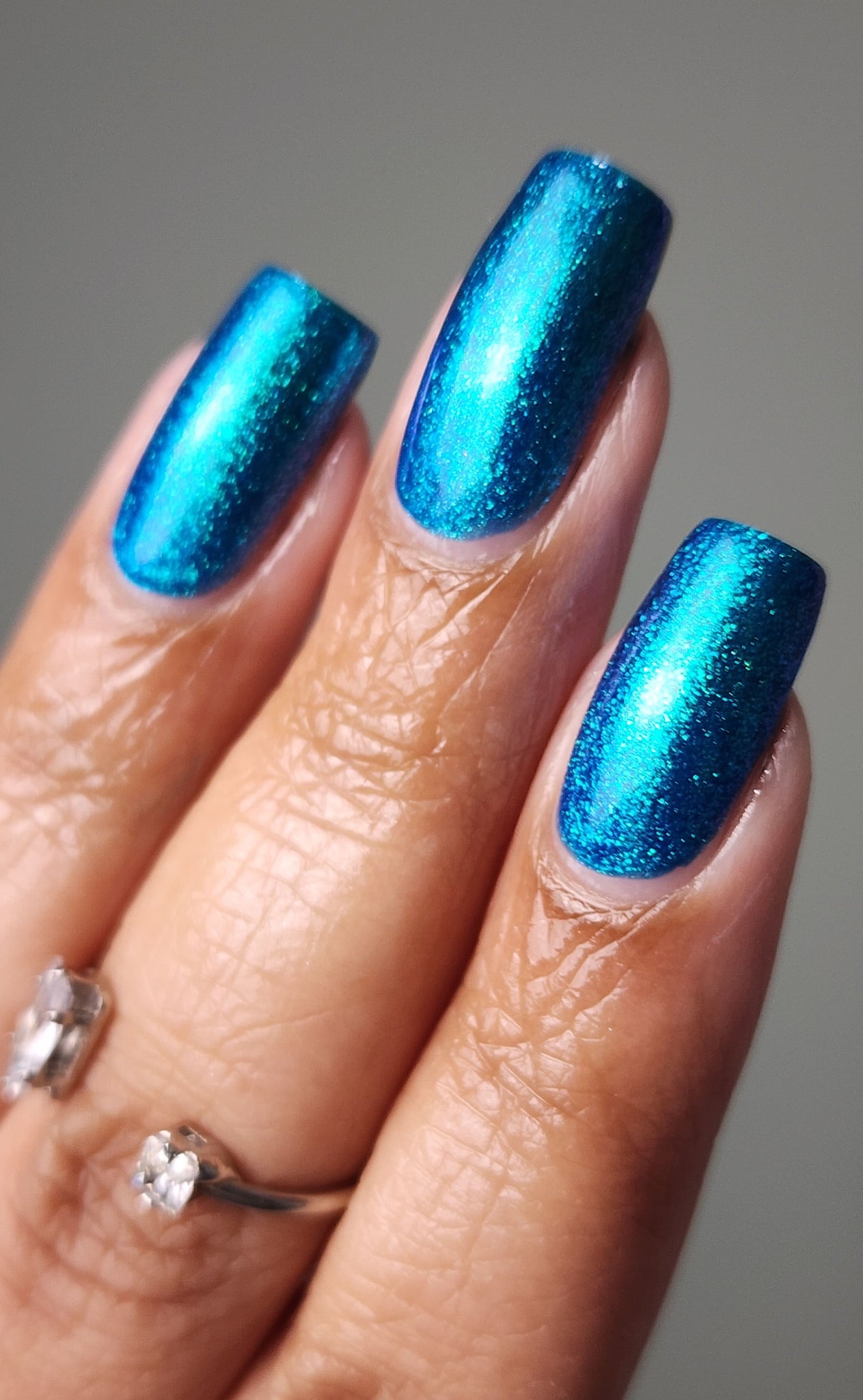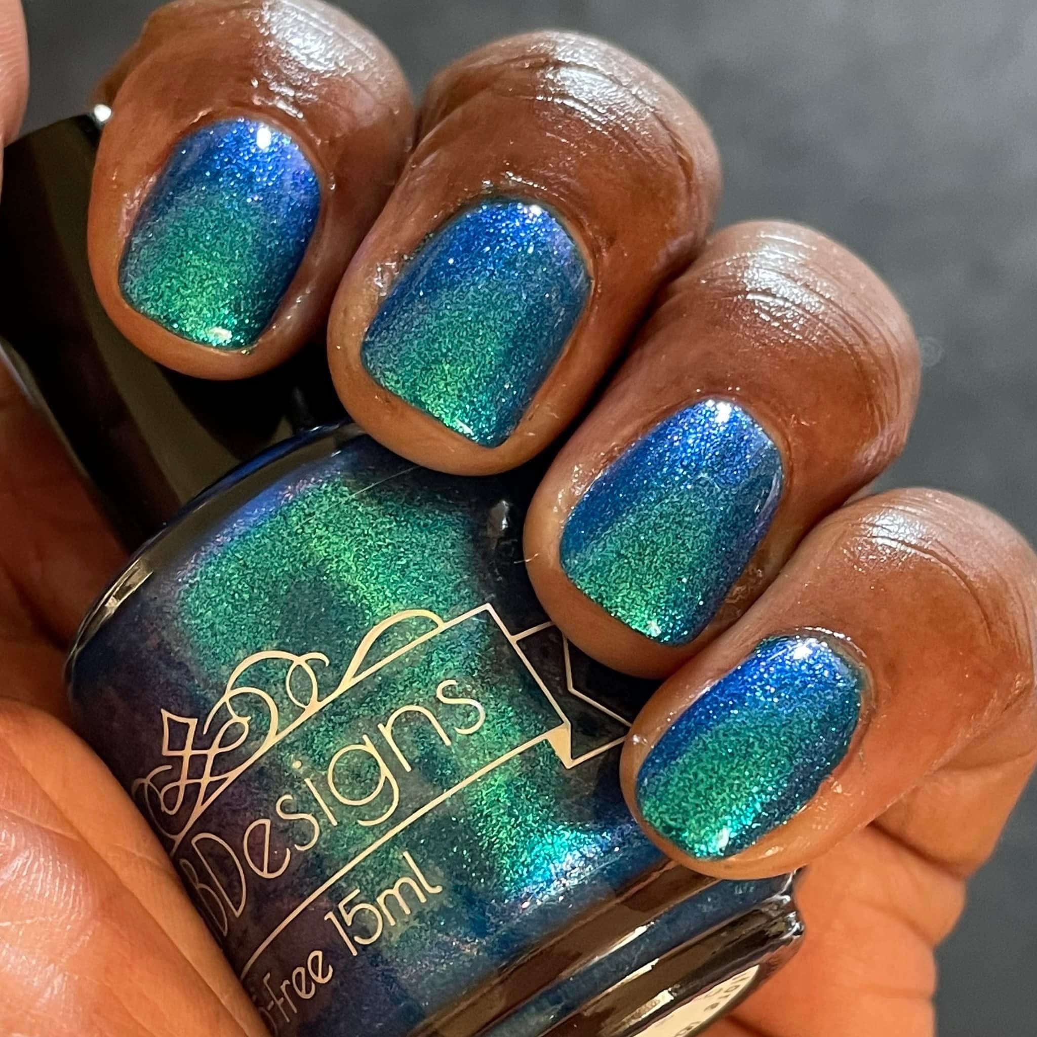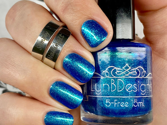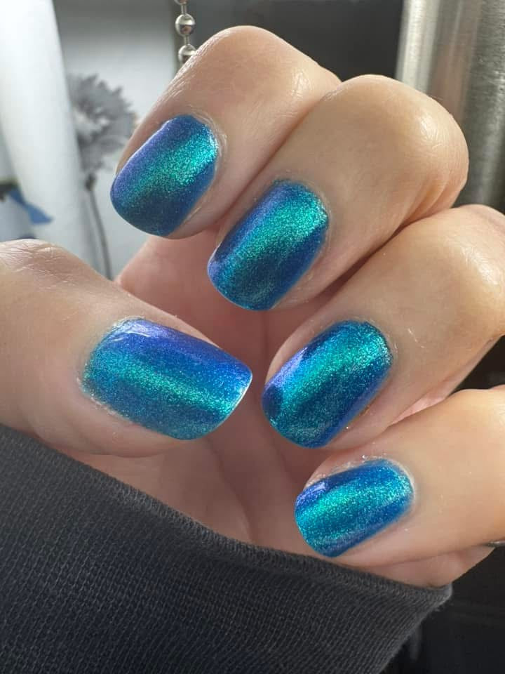 Phthalo Blue- buildable blue jelly base loaded with aqua to blue to purple large particle shifting shimmer