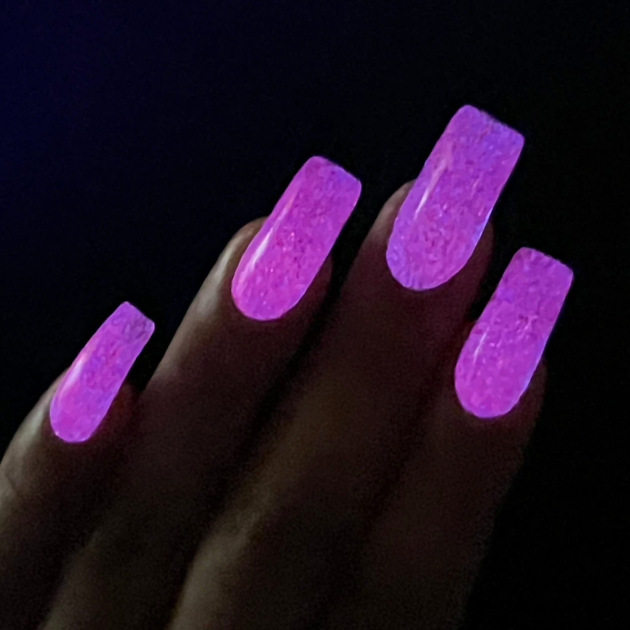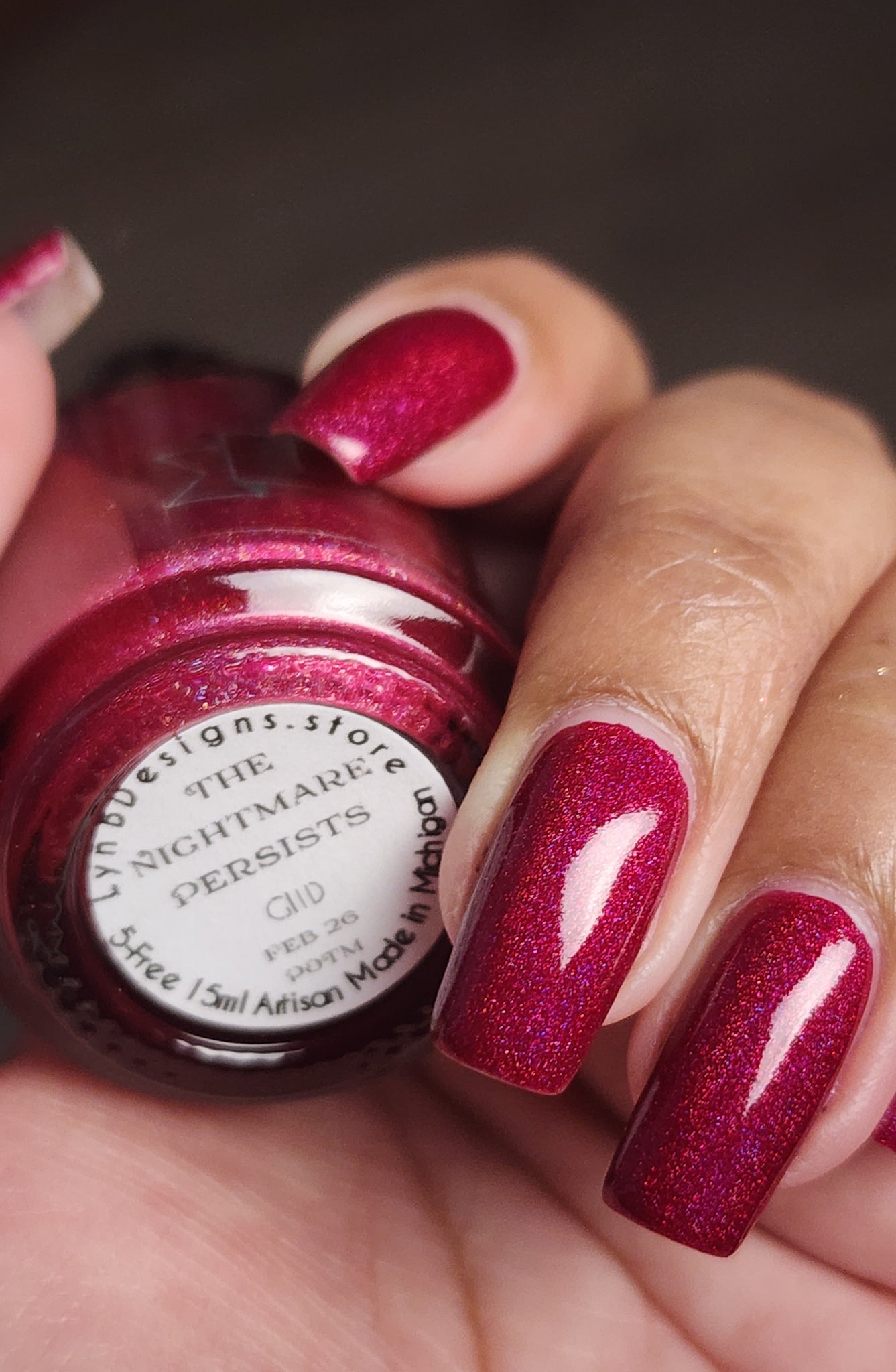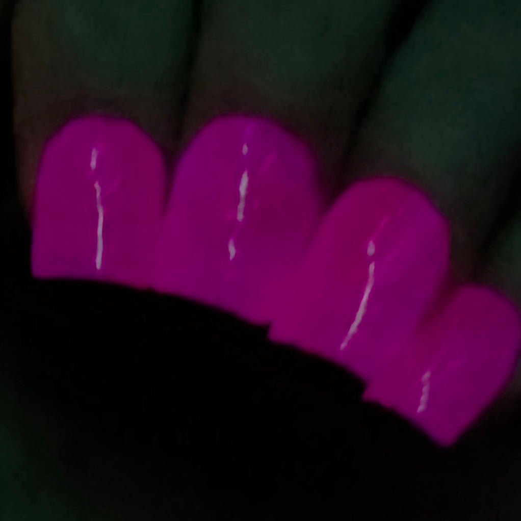 The Nightmare Persists- dark magenta linear holo with pink glow in the dark