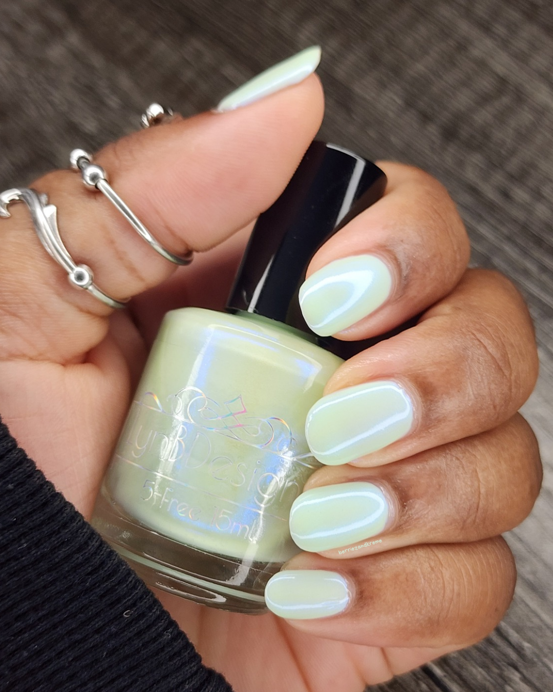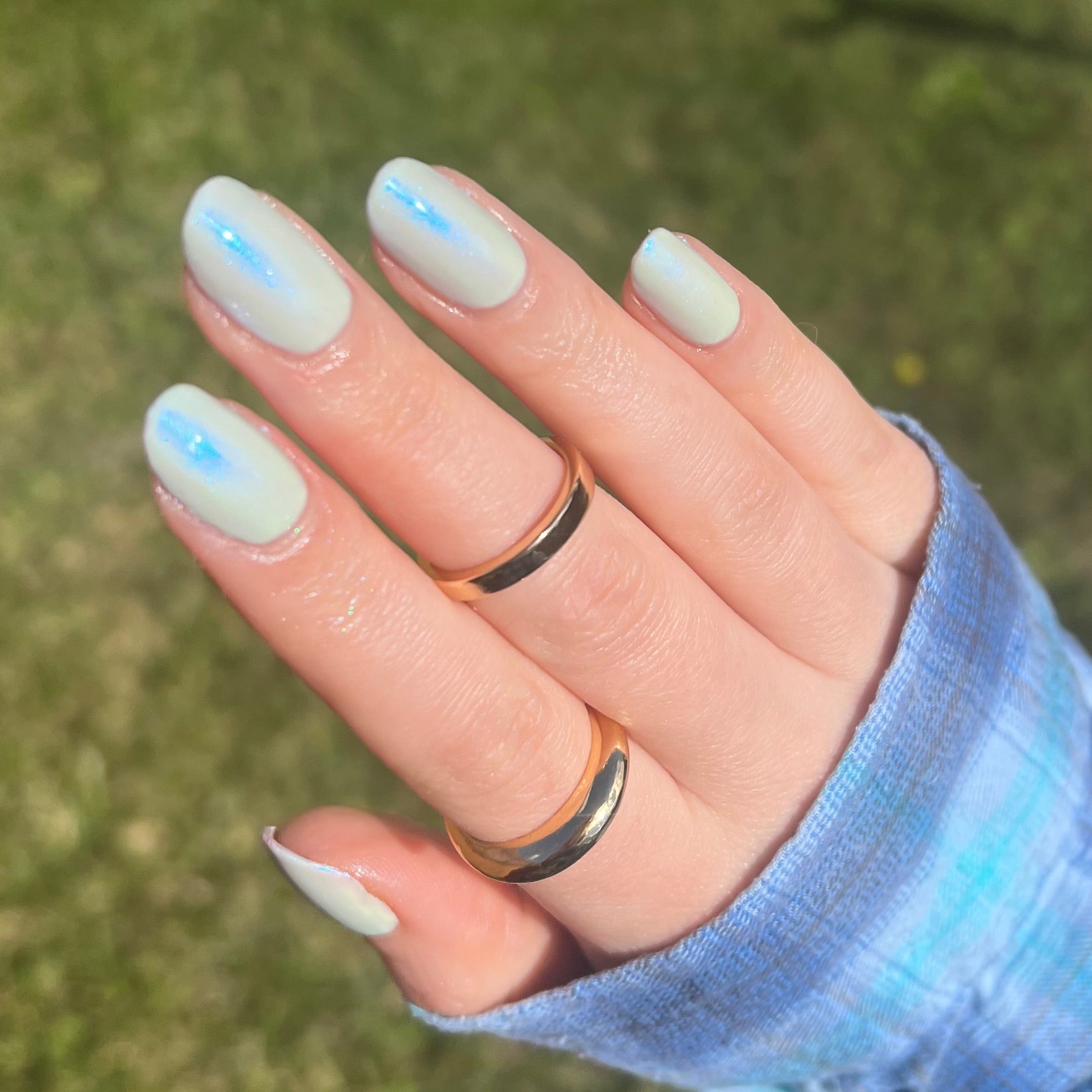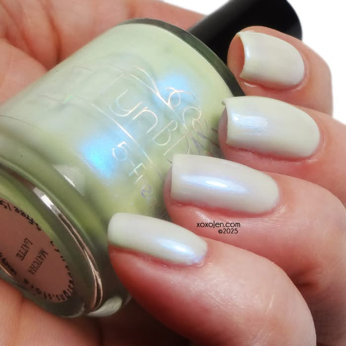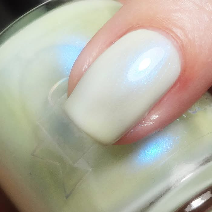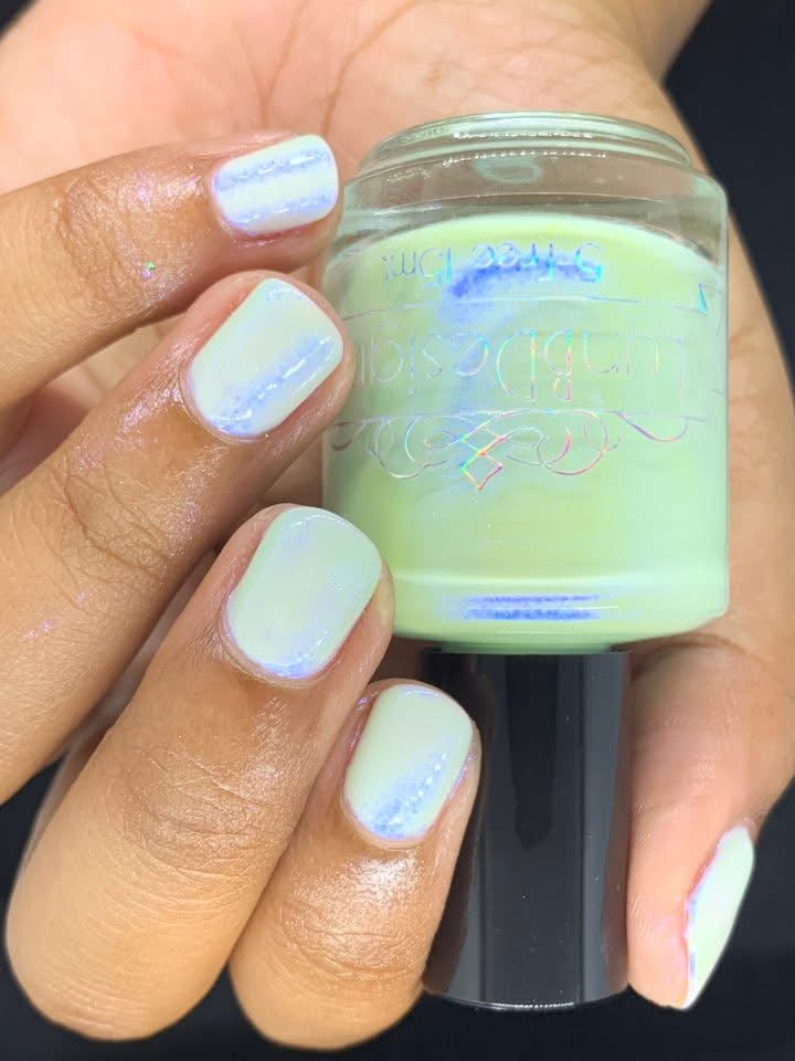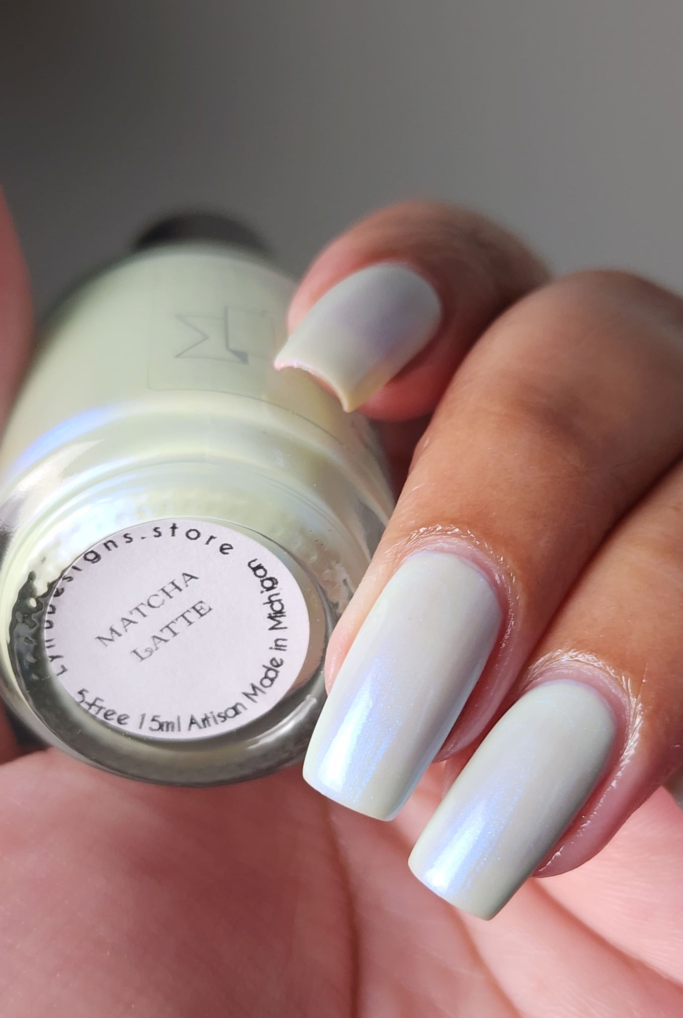 Matcha Latte- creamy pastel green base with blue to indigo shifting shimmer