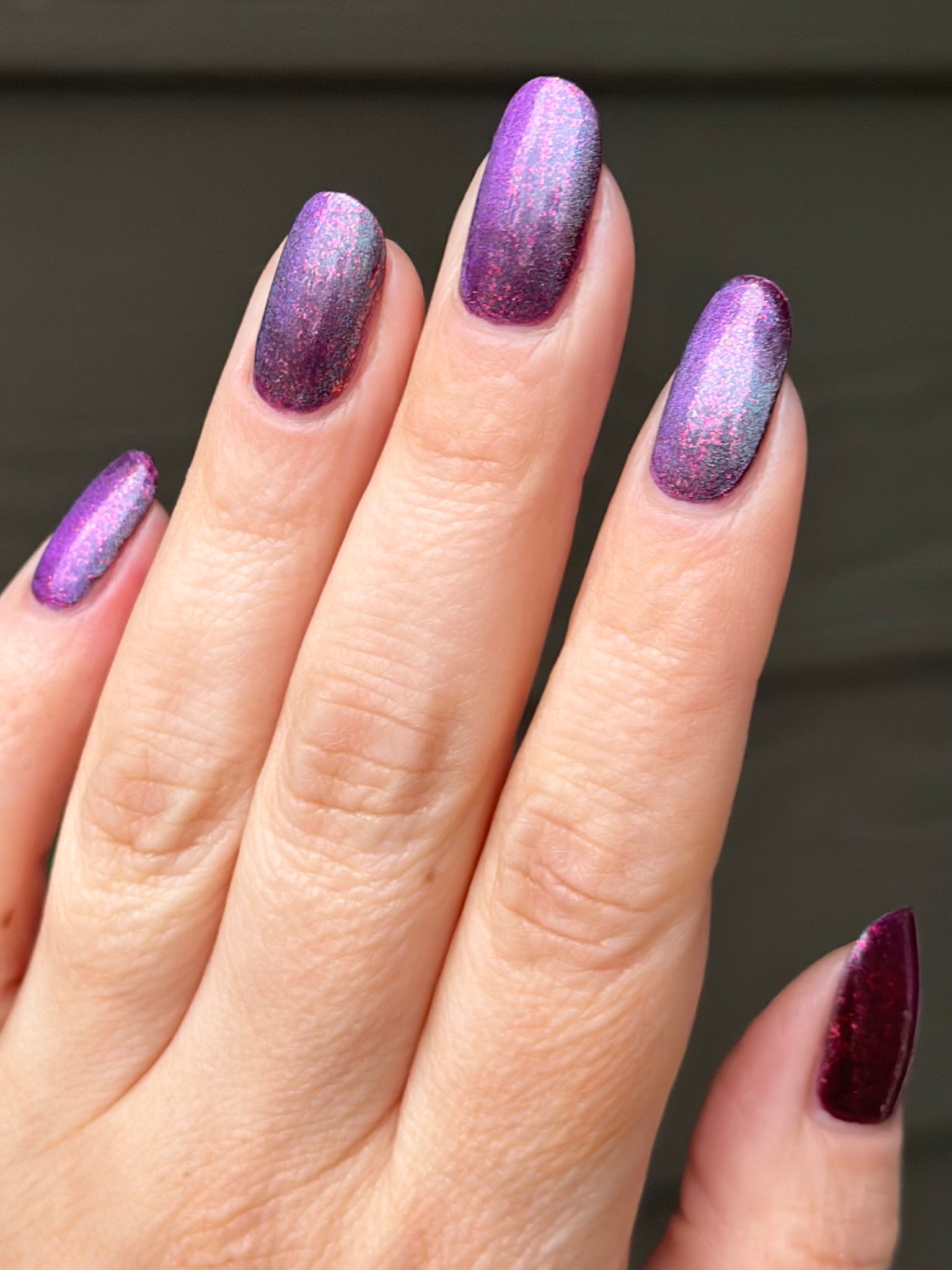 Plants for the Weekend- deep wine base with teal to purple shifting magnetic pull and pink to orange shifting micro flakies-Rex Begonia Firework