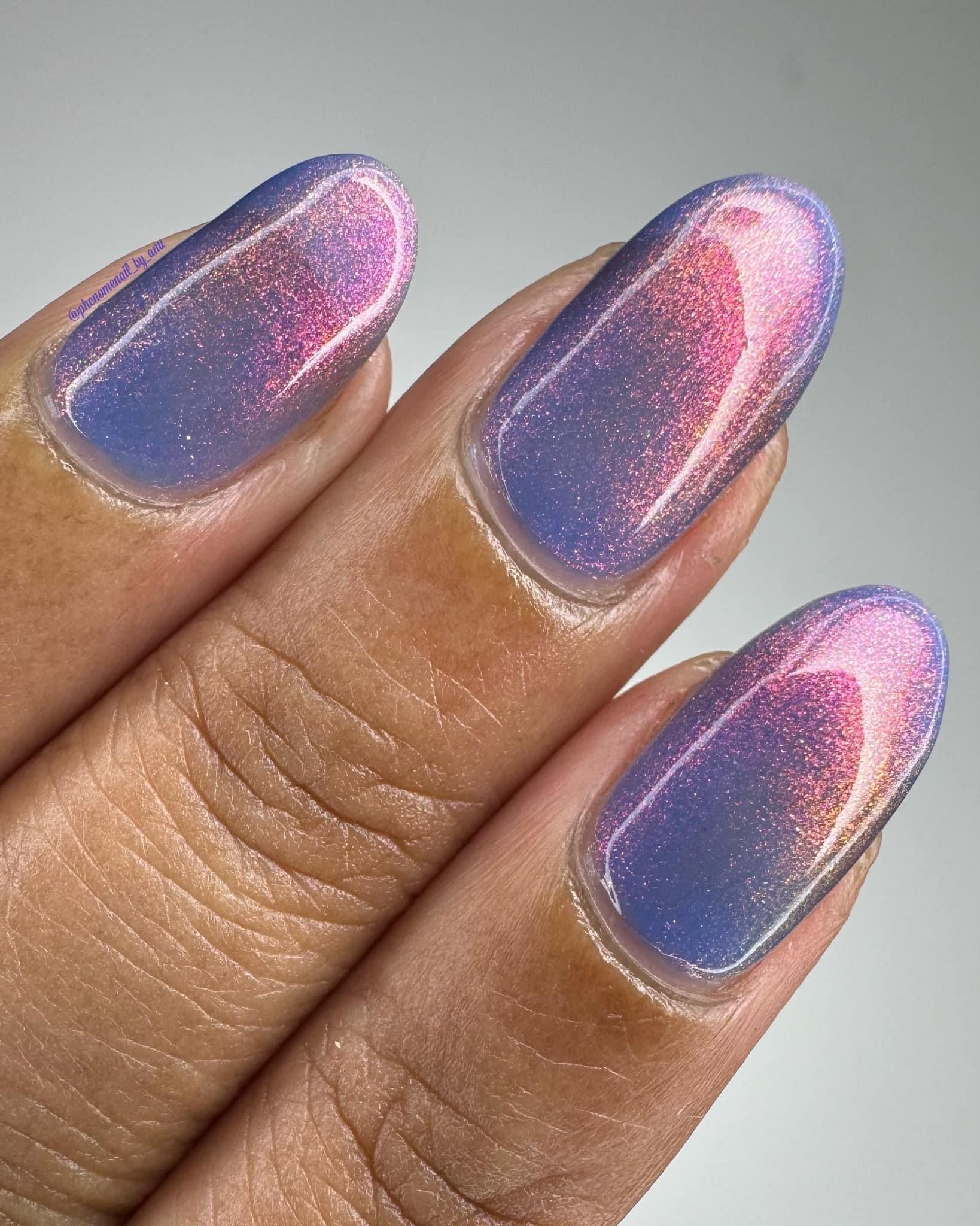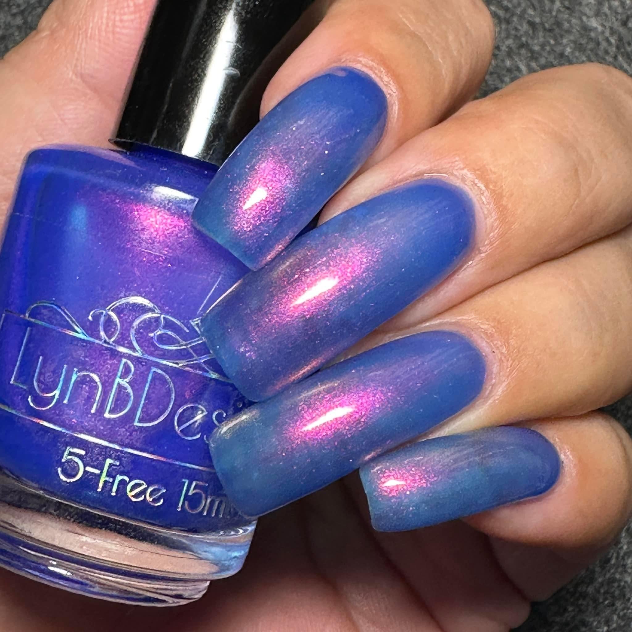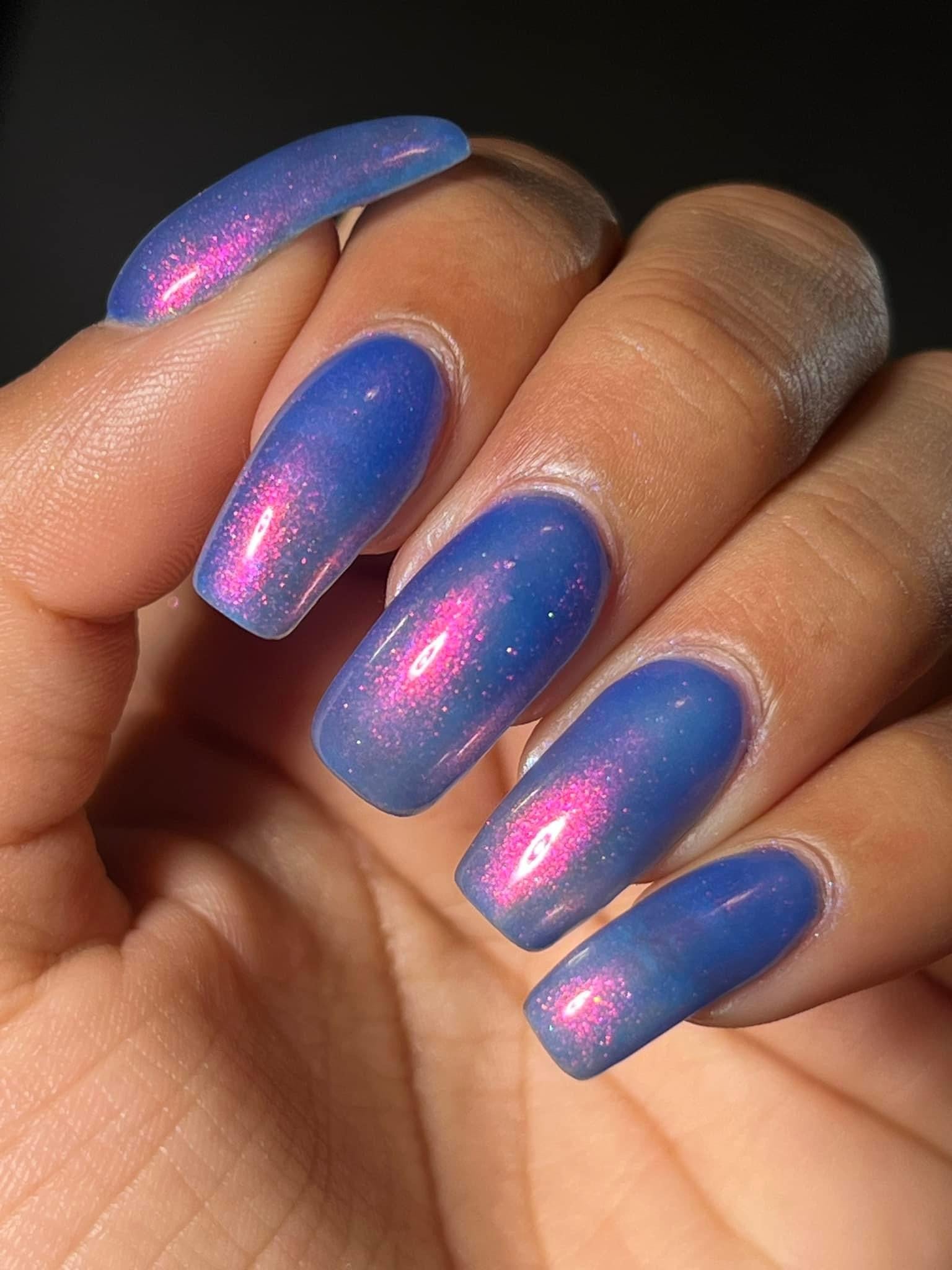 Caught the Wind in a Kite of Dreams- bright blue jelly base with pink to orange to gold shifting shimmer