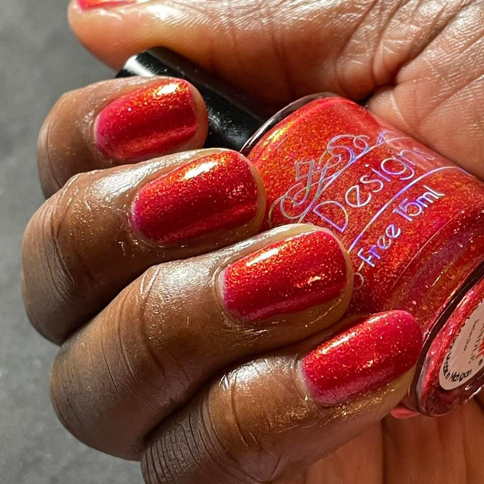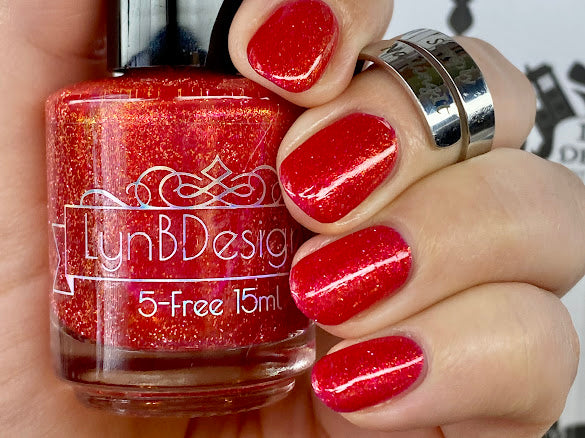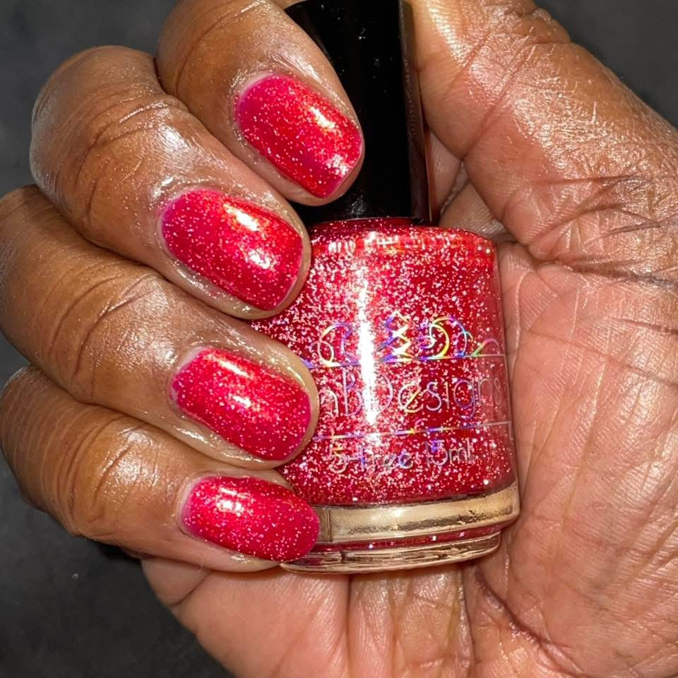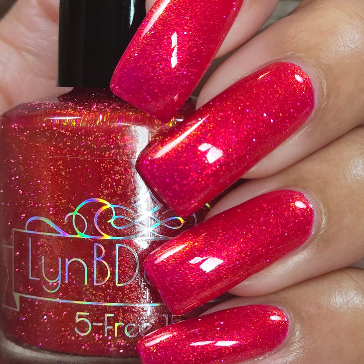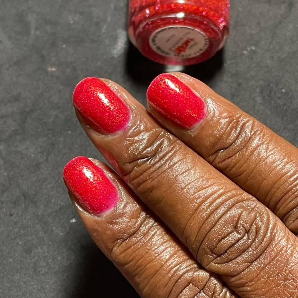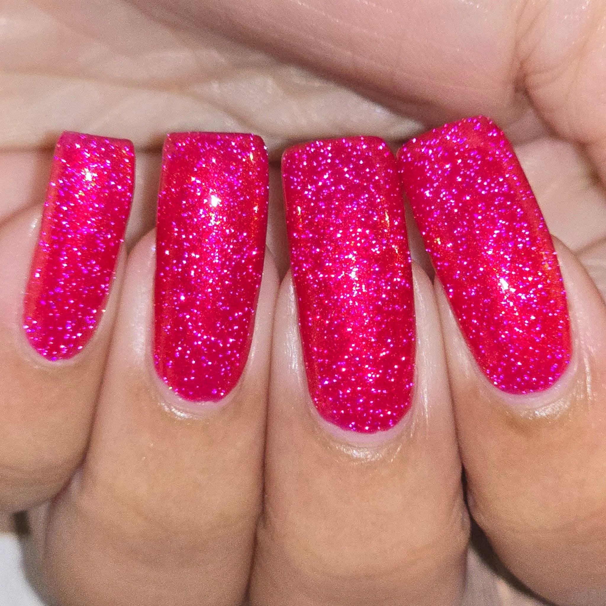 Too Yacht To Handle- hot pink leaning red with red to orange to gold shifting shimmer and peach light reflective glitters