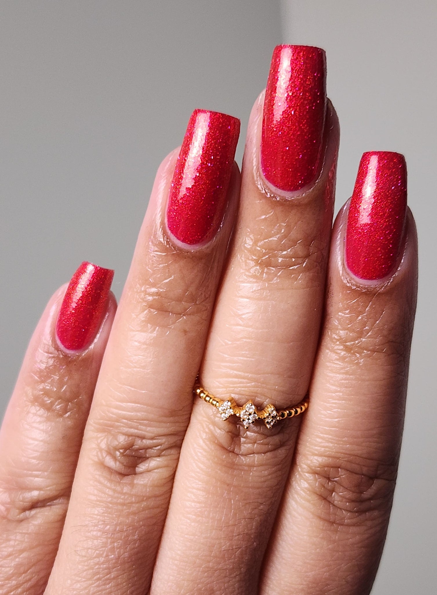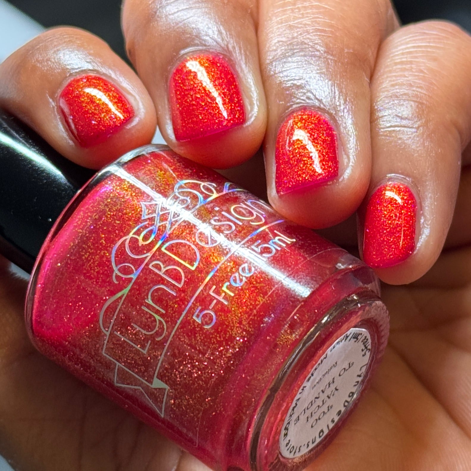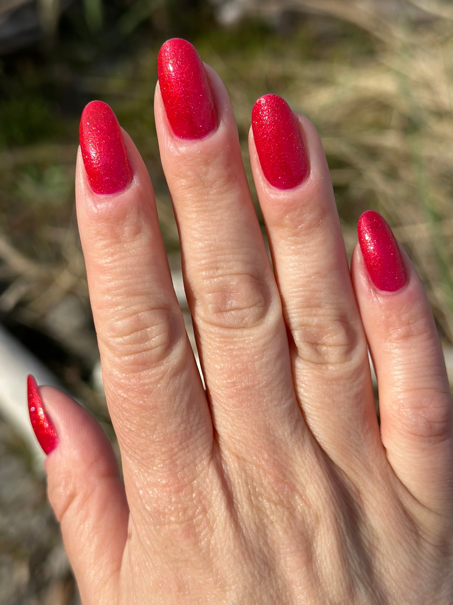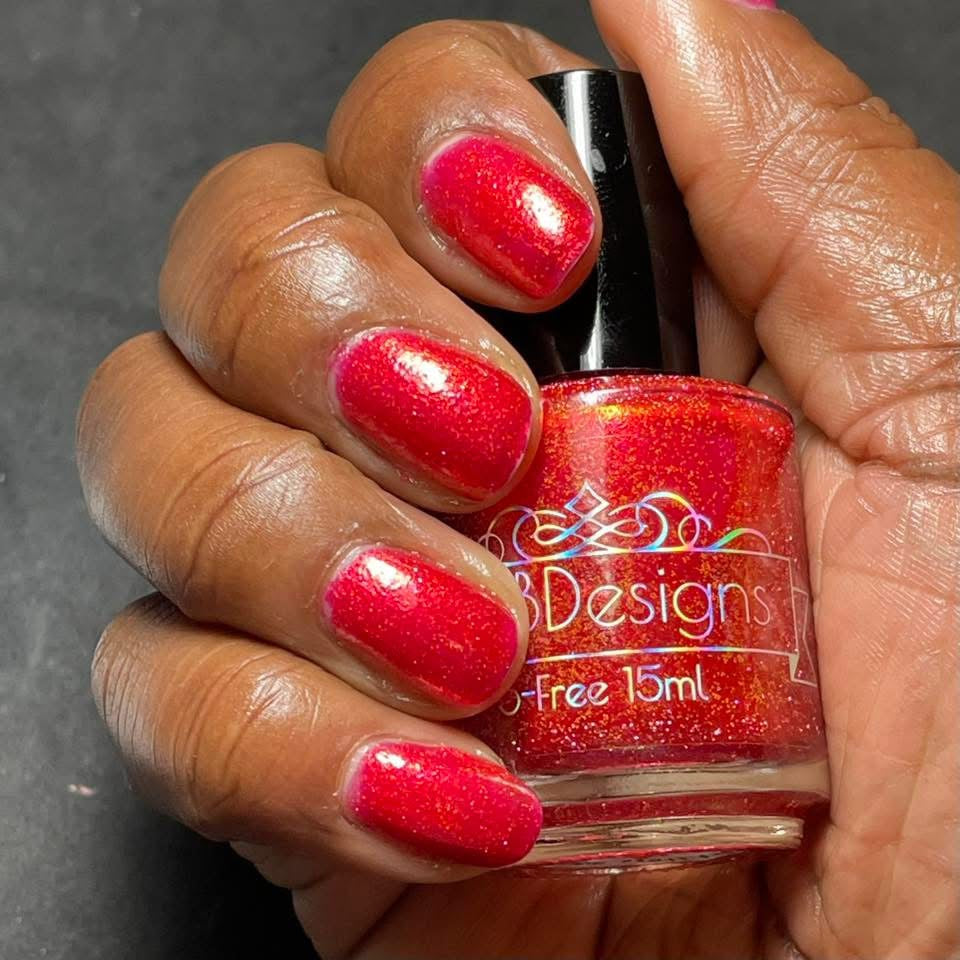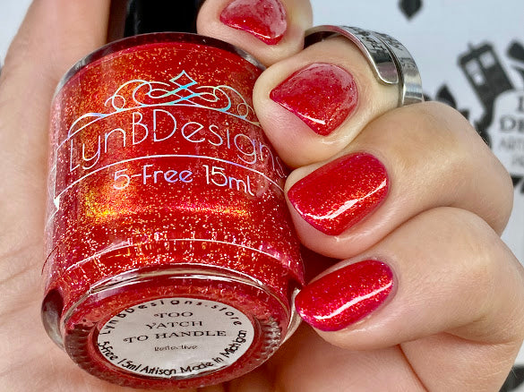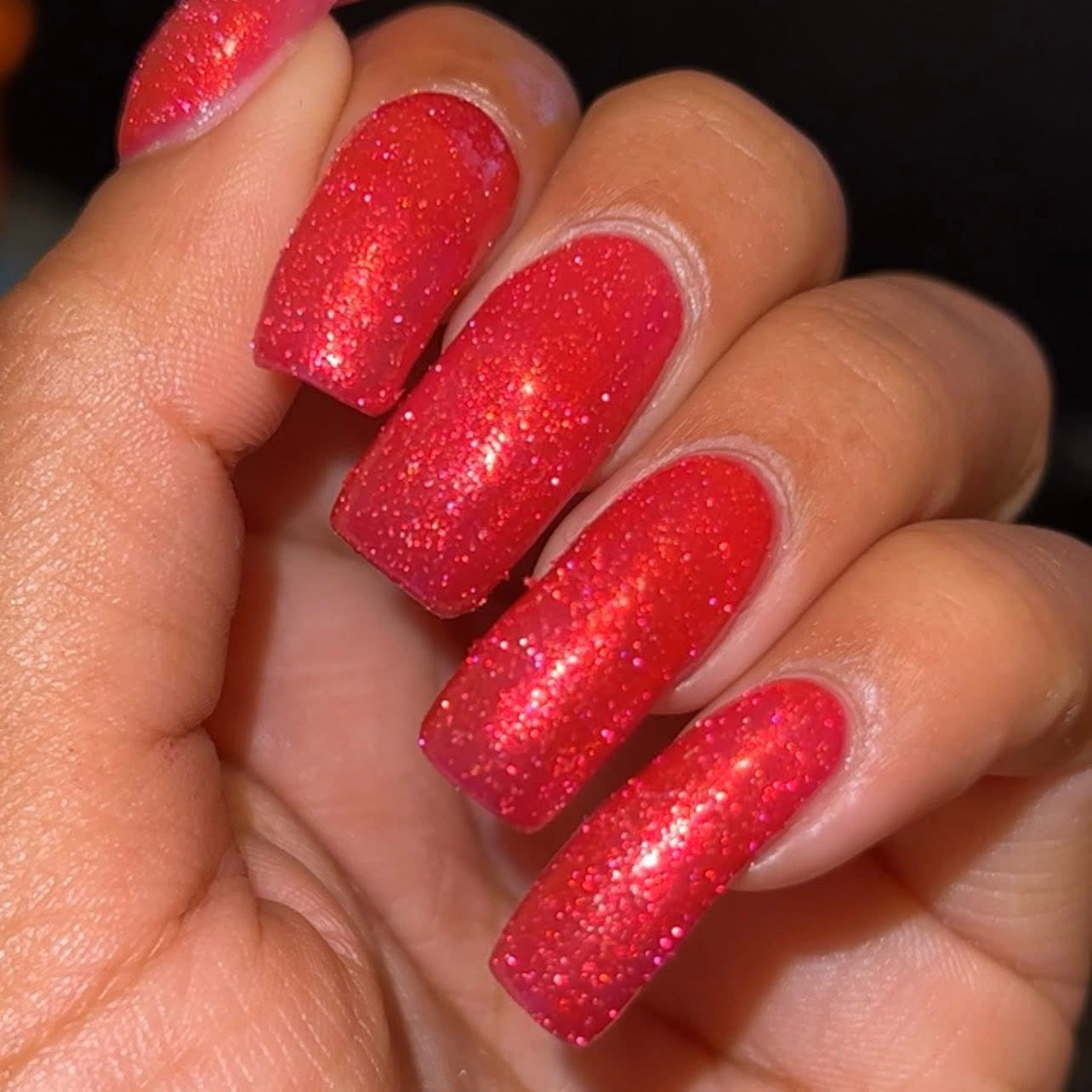 Too Yacht To Handle- hot pink leaning red with red to orange to gold shifting shimmer and peach light reflective glitters