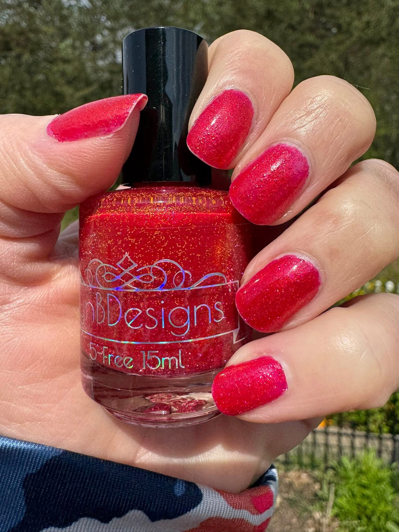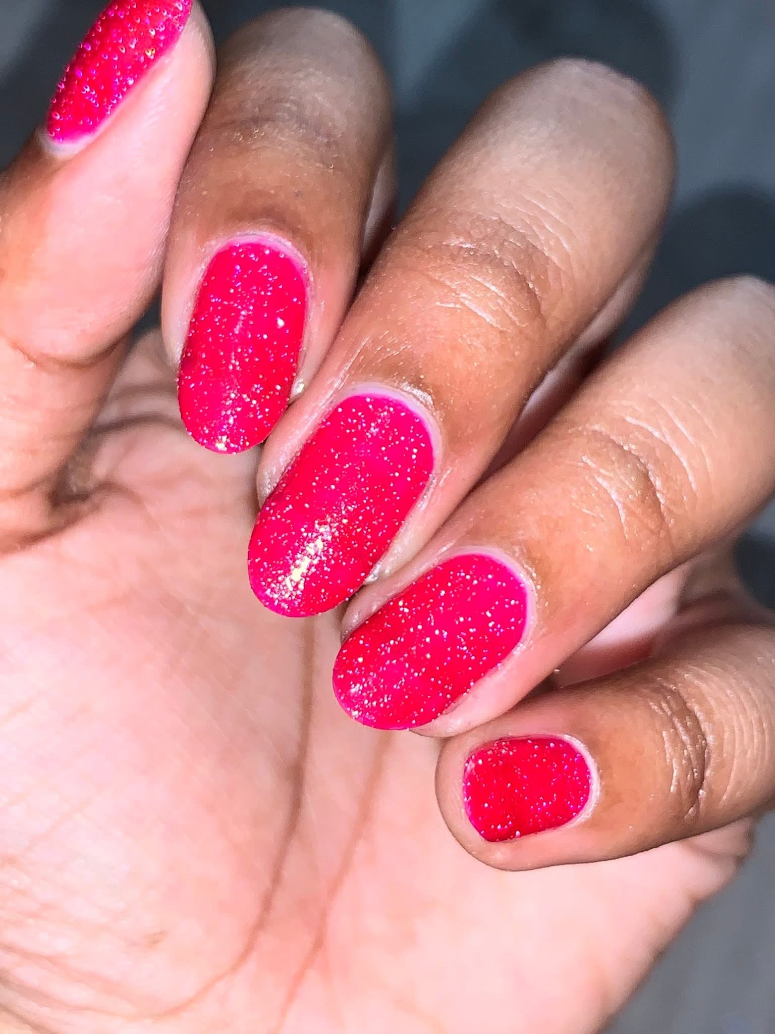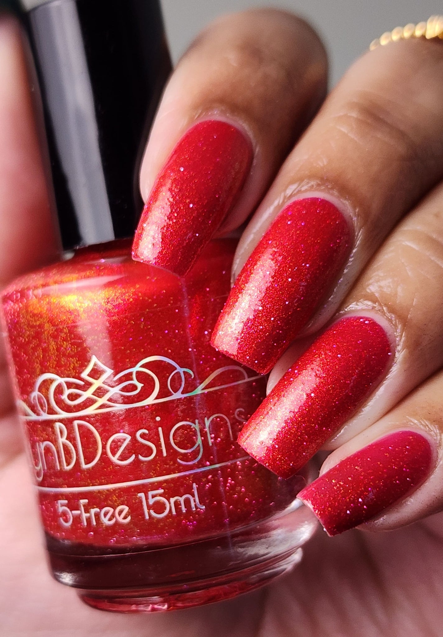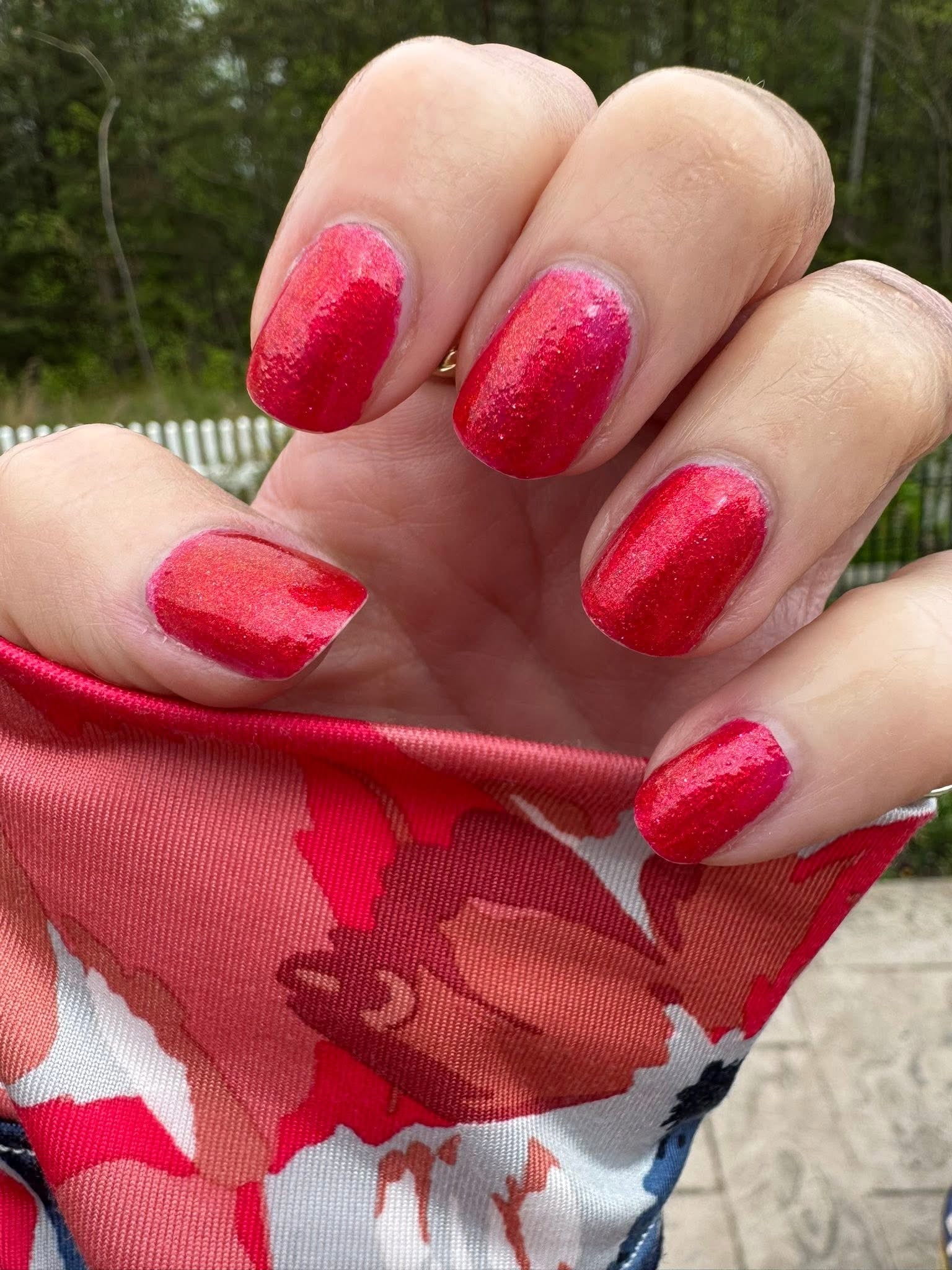 Too Yacht To Handle- hot pink leaning red with red to orange to gold shifting shimmer and peach light reflective glitters