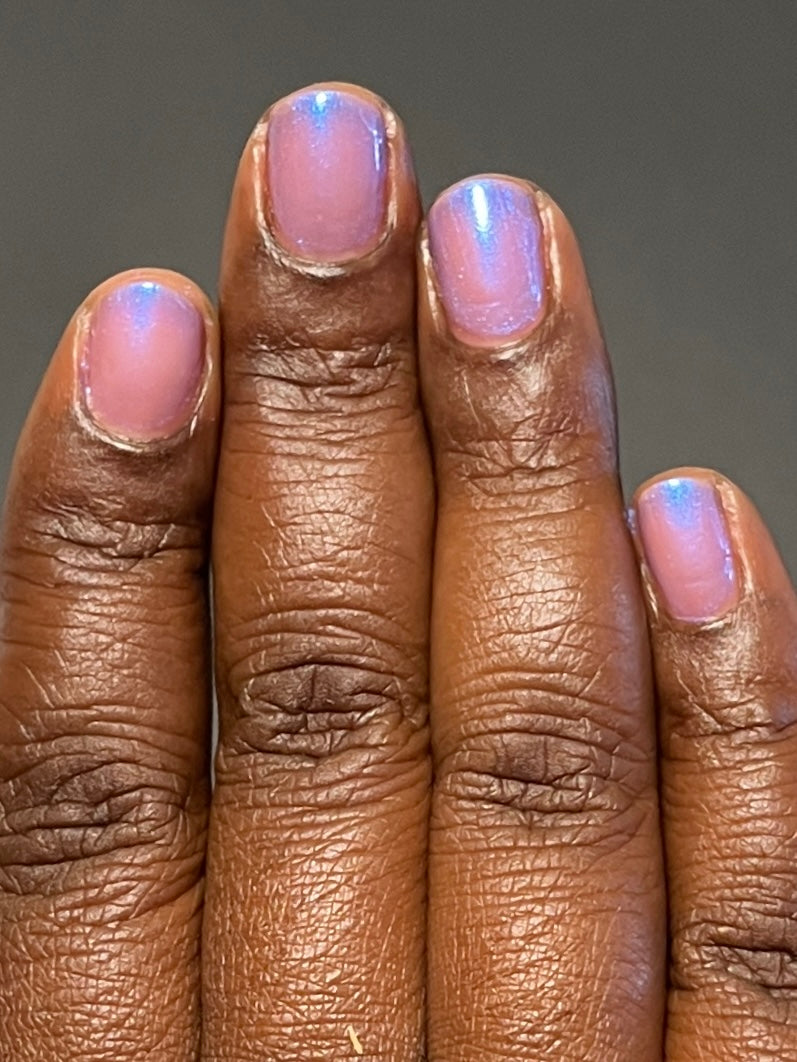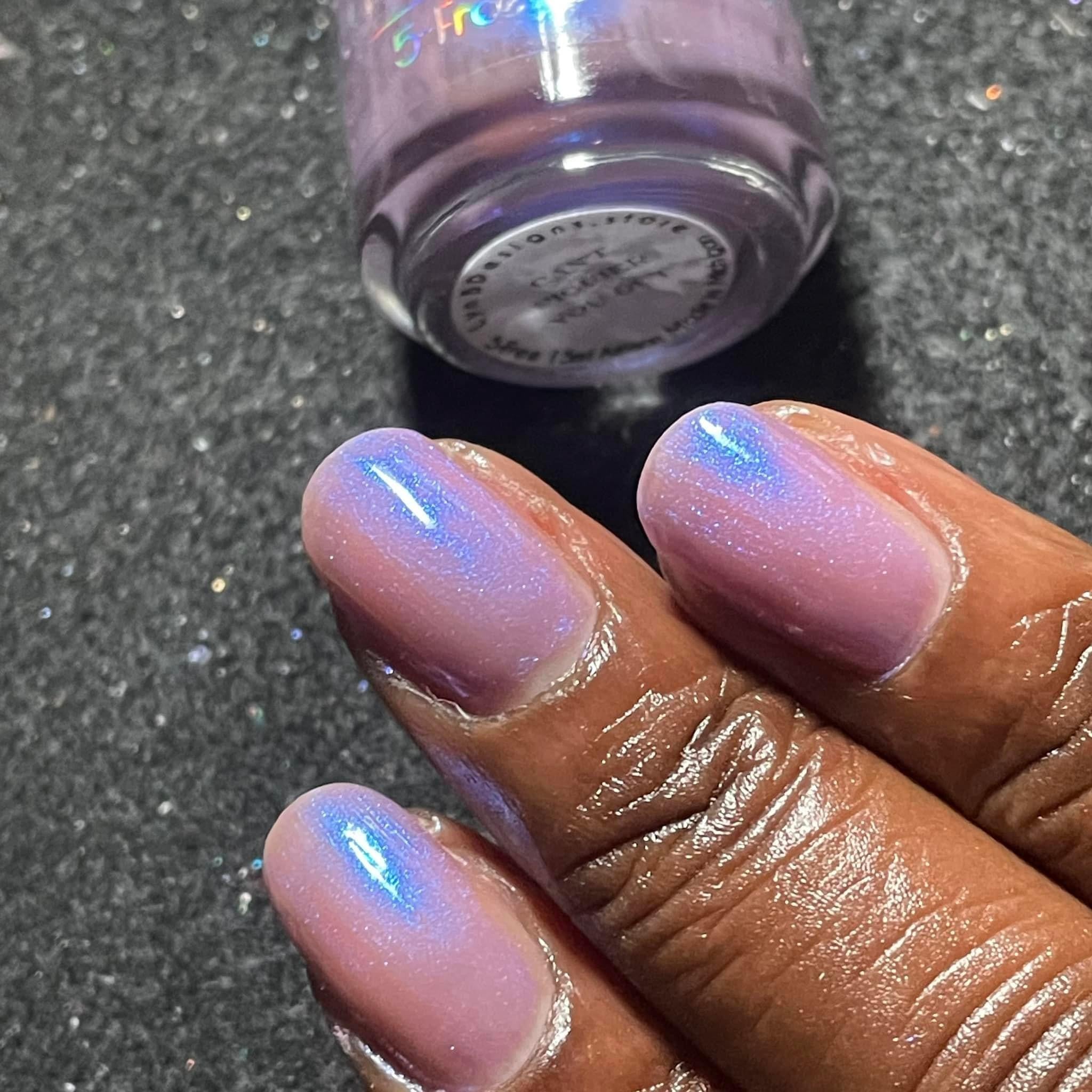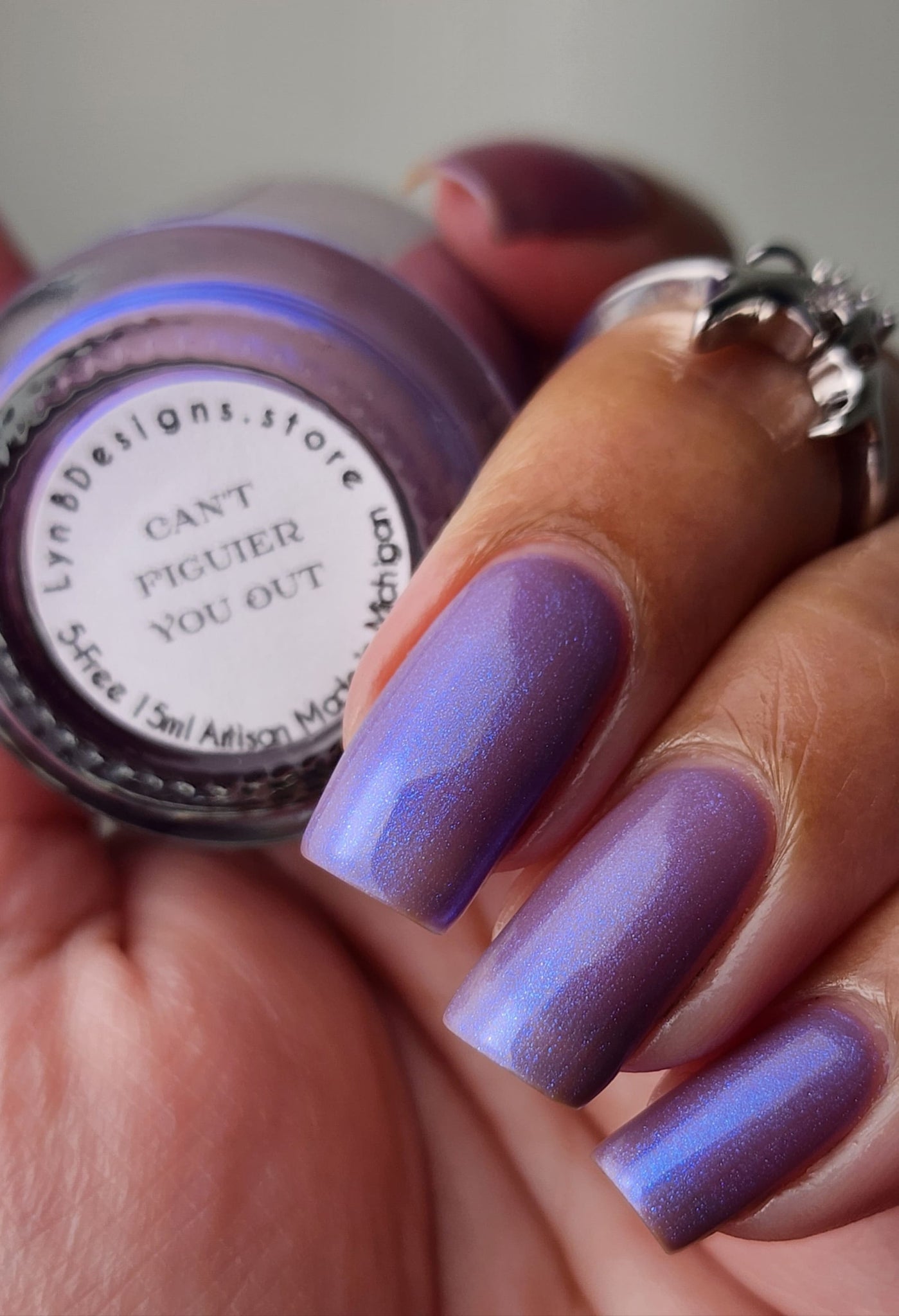 Can’t Figuier You Out- a plummy brown base filled with blue to violet shifting shimmer