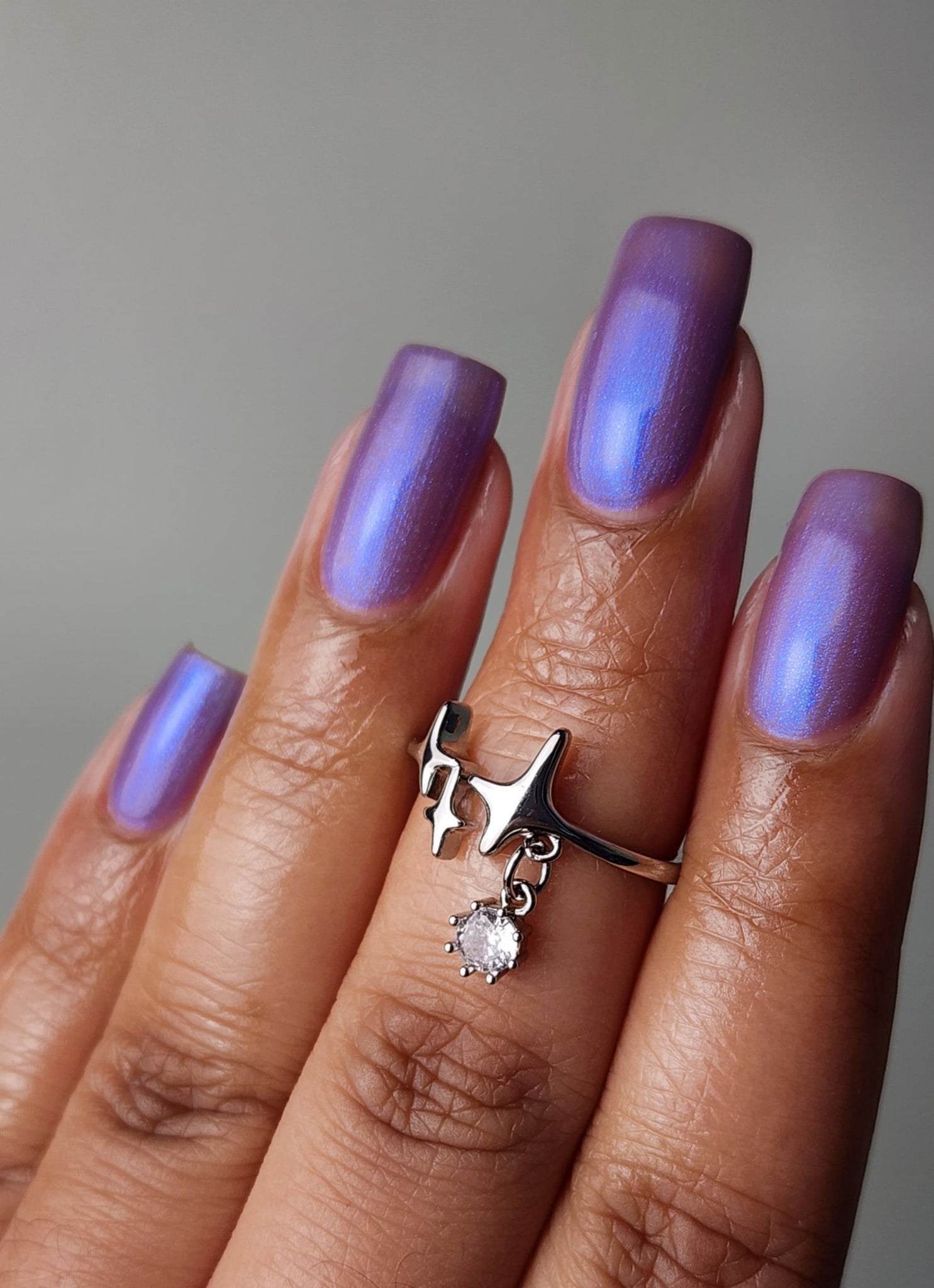INGREDIENTS:Butyl Acetate,Ethyl Acetate,Nitrocellulose,Acetyl Tributyl Citrate,Isobutyl Acetate,Isopropyl Alcohol,Adipic Acid/Neopentyl Glycol/Trimellitic Anhydride Copolymer,Silica,Styrene/Acrylates Copolymer,N-Butyl Alcohol,Benzophenone-1,Violet2