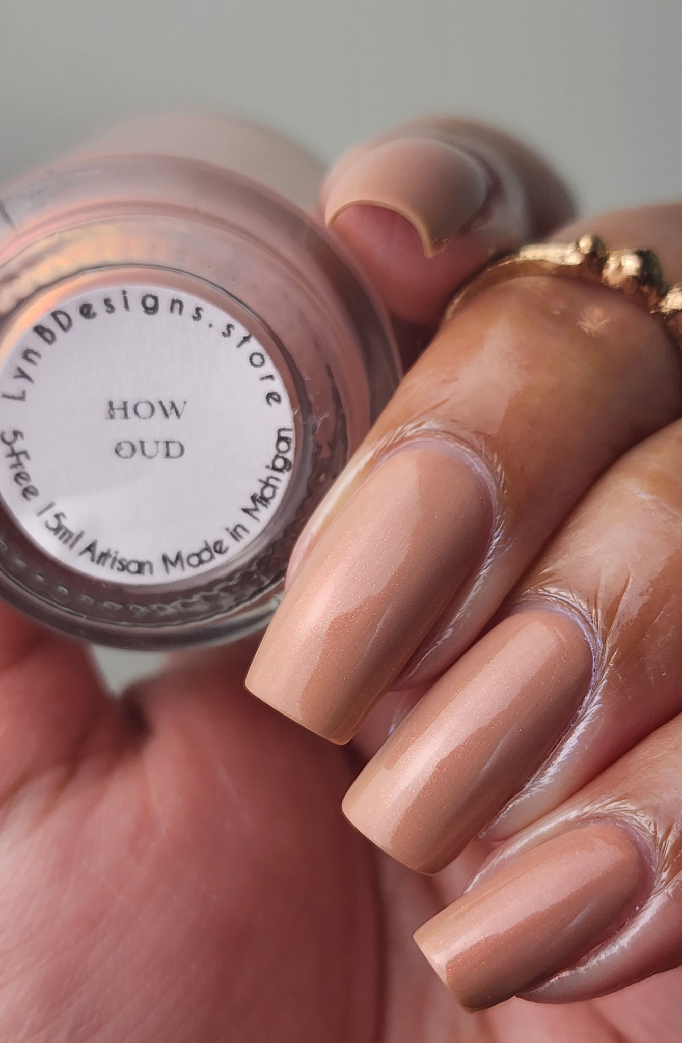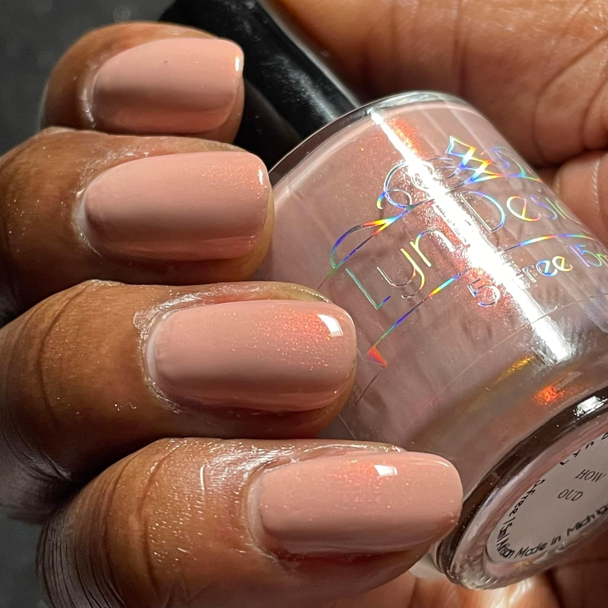 How Oud- light terracotta base with red to orange shifting shimmer